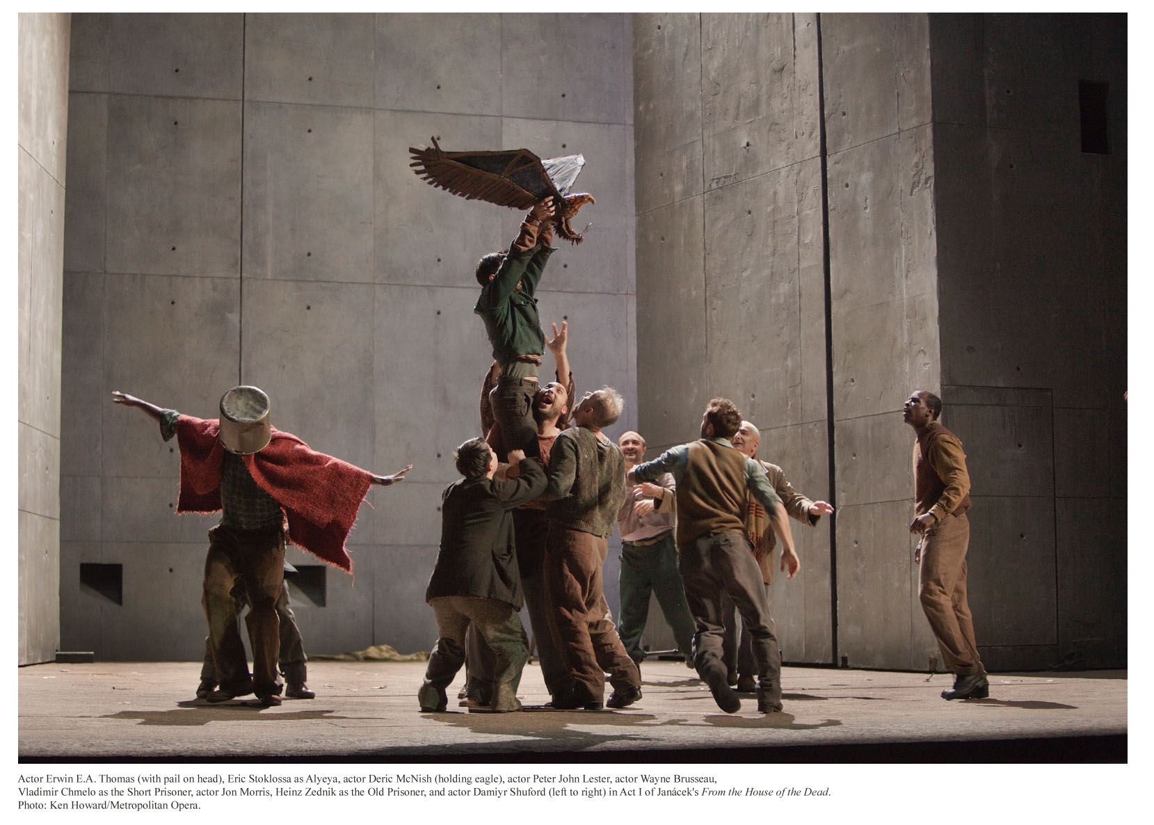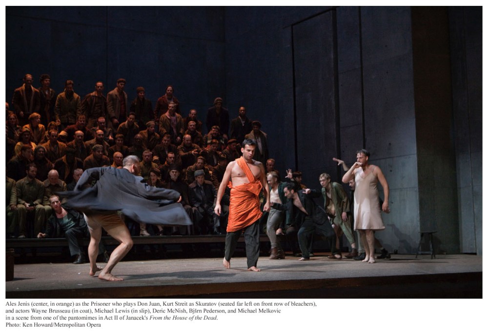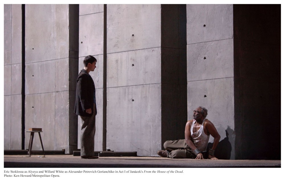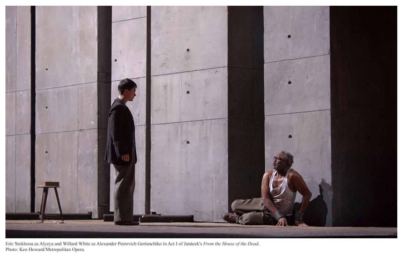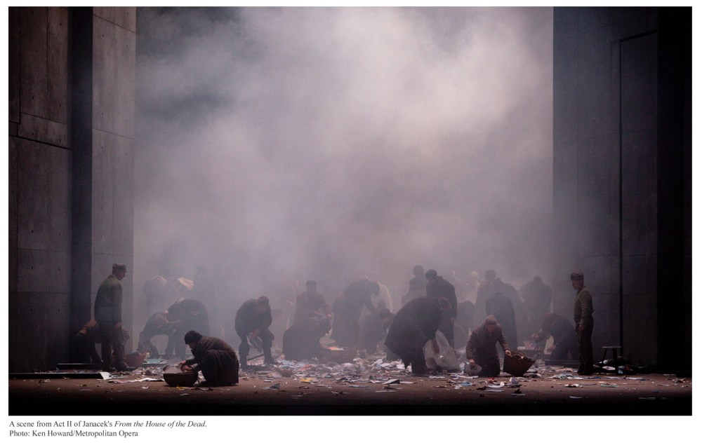 La visione del regista è splendidamente sostenuta dalle scene semplici e ingegnose di Michael Levine. Nel primo atto (quello della vita) siamo su un prato verde che copre anche la passerella che separa la buca dell’orchestra dal pubblico della platea. Sul fondo viene proiettata l’immagine di un bosco nell’avvicendarsi delle stagioni e prima una, poi due e infine tre fosse si aprono nel terreno: sono le porte da cui entrano i nostri giovani eroi. E infatti nel secondo atto (quello della morte) siamo nei sotterranei, il pavimento è di terra e sono le tre fosse, che vediamo dal basso verso l’alto, ora a illuminare l’ambiente ipogeo. La buca dell’orchestra è anch’essa una fossa da cui scaturisce la musica che riconcilia l’umanità la quale tutta vestita di bianco alla fine dell’opera vi si affaccia per celebrare «la bellezza e la saggezza».