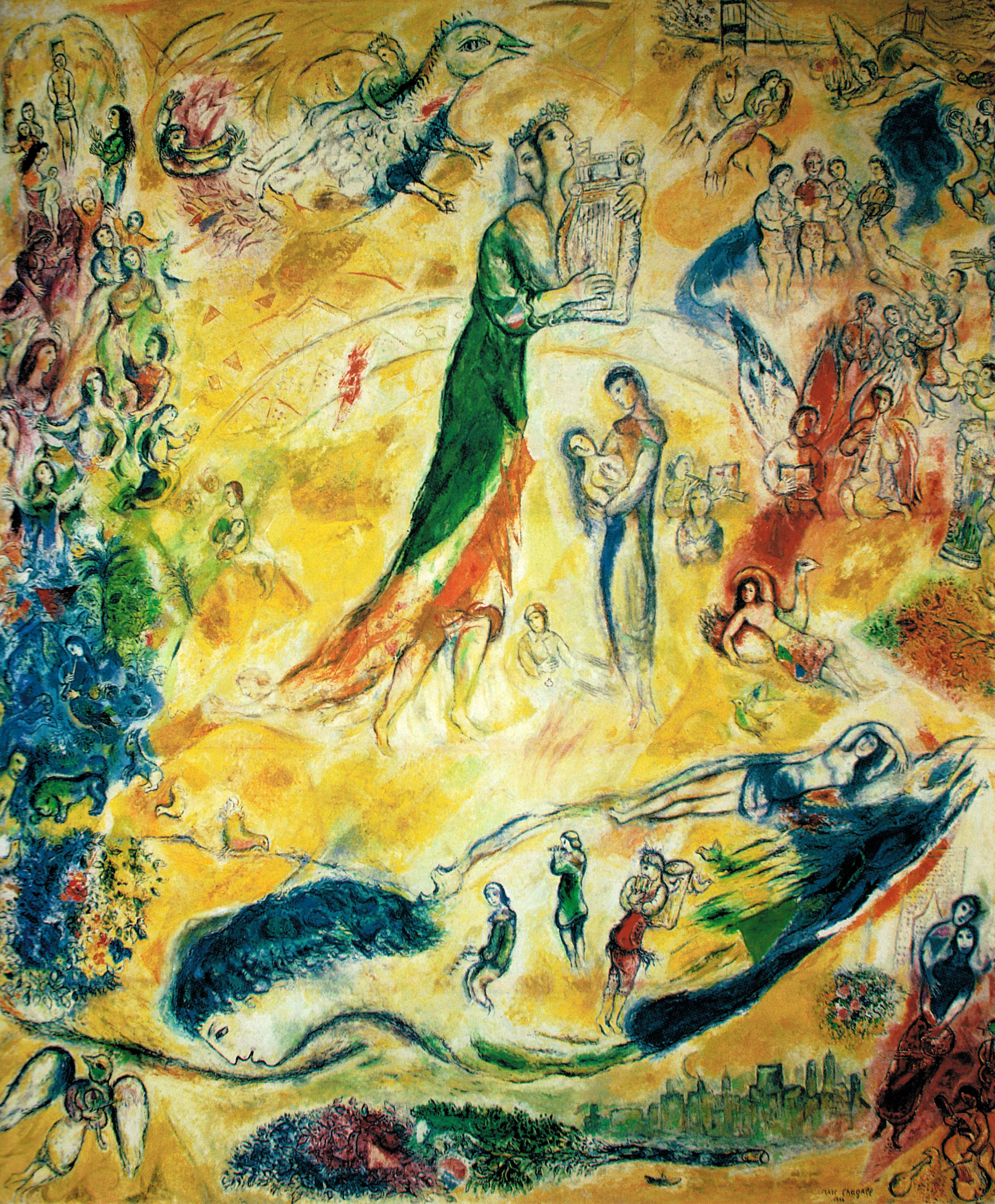 L’atrio custodisce due murales opera di Marc Chagall, entrambi di 9,1 m x 11. Essi raffigurano Il trionfo della Musica (parete di sinistra) e Le fonti della musica (parete di destra).