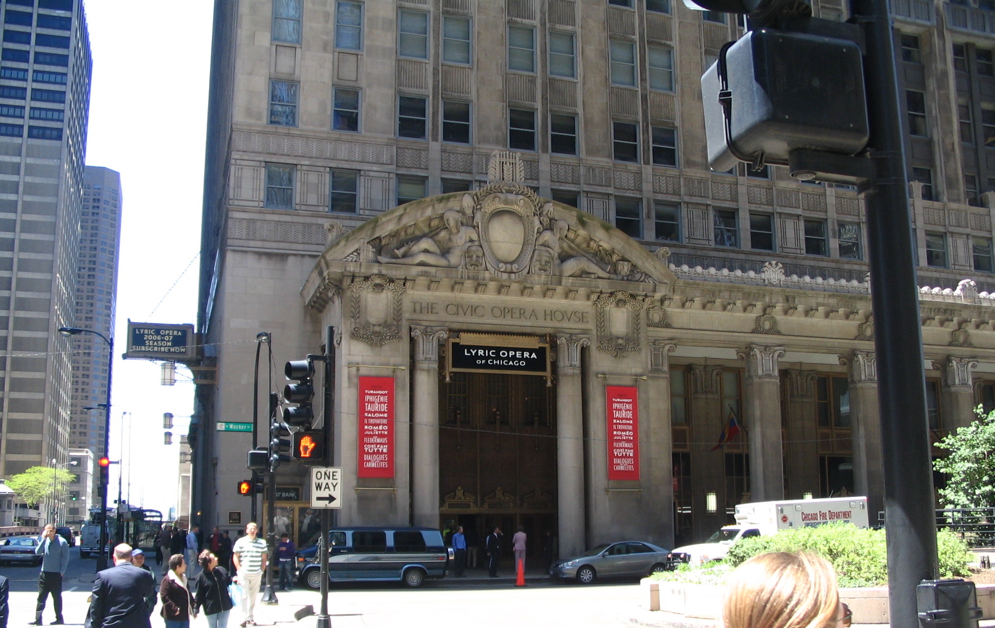 A fine ‘800 Chicago aveva un teatro dell’opera ubicato in un edificio che comprendeva anche uffici per compensare i costi di gestione del teatro. Costruito nel 1884-1885 vide la prima di molti musical prima di venir demolito nel 1913. Anche il successivo Civic Opera House fa parte di un complesso di 45 piani, il Civic Opera Building. Aperto il 4 novembre 1929 nella prima stagione il teatro ha ospitato Camille, libretto e musica di Hamilton Forrest, tratta come La Traviata dalla Dame aux camélias di Dumas, opera di grande successo locale e mai rappresentata al di fuori di Chicago.