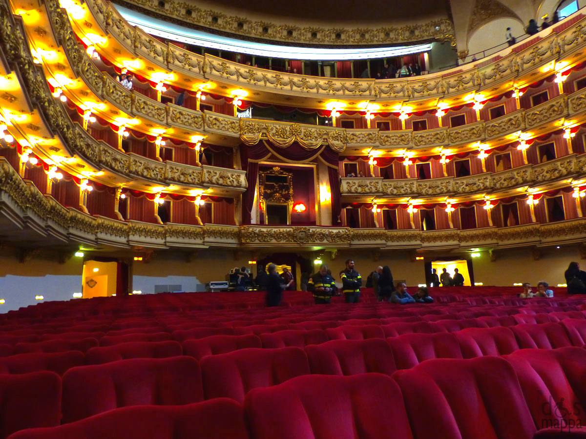 La struttura attuale del teatro è il risultato della ristrutturazione avvenuta dopo la seconda guerra mondiale. Le linee attuali sono il frutto della ripresa dei disegni originari di Francesco Galli da Bibiena. Il teatro in principio era composto da una sale all’italiana a cinque ordini di palchi decorati da foglie e conchiglie dorate a oro fino digradanti verso il palco per dare una buona visuale a tutti gli spettatori (accorgimento all’epoca d’avanguardia). Il palcoscenico aveva un’apertura laterale del proscenio così da essere diviso in tre parti (cosa ripetuta solo poi nel teatro di Imola). Dopo l’incendio del 1749 si apportarono alcune modifiche: venne ridotto il proscenio chiudendo le aperture laterali, si restrinsero i boccascena, si aggiunsero i palchi di proscenio, venne eliminata la digradazione dei palchi e vennero modificate le decorazioni. Ora il teatro è a tre ordini di palchi (ognuno con una decorazione dorata differente), una balconata ed una galleria. È stata ripresa anche la sistemazione digradante dei palchi. Il ridotto del teatro Filarmonico viene anche chiamato “sala degli Specchi” per le numerose decorazioni dorate e i molti specchi che lo decorano.