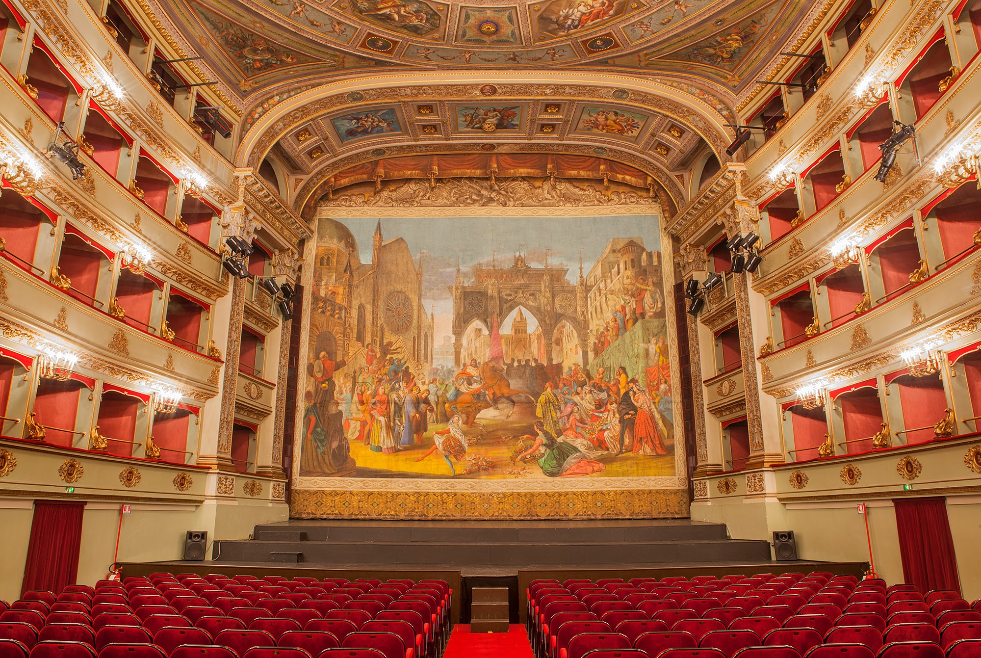 La decorazione interna venne affidata a due famosi artisti neoclassici: l’architetto Giovanni Antonio Antolini (autore del progetto del “Foro Bonaparte” di Milano, mai realizzato), al quale spettò la progettazione scenico-arredativa del teatro, e il pittore Felice Giani, che insieme all’ornatista Gaetano Bertolani dipinse le “Storie di Apollo” sulla volta della sala. Il teatro venne inaugurato nel carnevale del 1798, non alla presenza dei nobili finanziatori quanto del popolo e dei giacobini, che nel frattempo avevano invaso la città in seguito alla vittoria napoleonica e al trattato di Campoformio. Per l’occasione vennero rappresentate tre operine, di cui due di Marcos António Portugal Lo spazzacamino principe e Le confusioni della somiglianza ossia Li due gobbi e la terza La capricciosa corretta di Vicente Martín y Soler. Successivamente fu aggiunto il fascione che sovrasta il cornicione e che reca al centro l’orologio in pietra con l’aquila federiciana e due cornucopie donate da Massimiliano di Beauharnais nel 1839, in seguito alla calorosa accoglienza ricevuta l’anno prima durante la sua visita a Jesi.