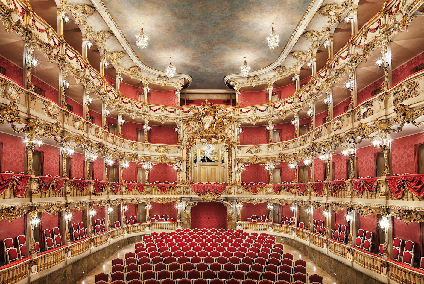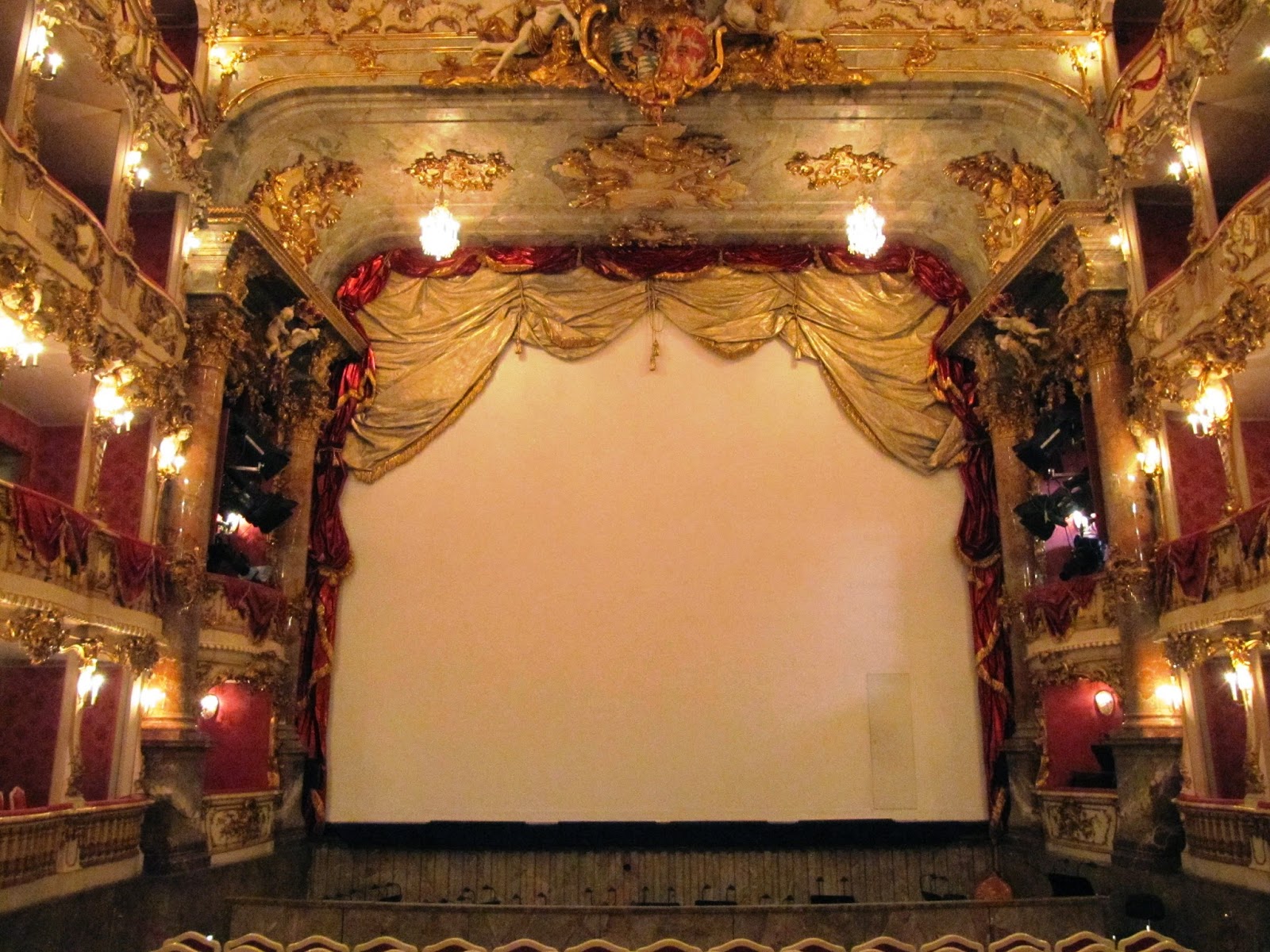 L’auditorium è decorato in rosso e oro. I quatto piani contenevano palchi di cui sono stati rimossi i tramezzi per creare delle balconate alla francese. Nel mezzo del secondo ordine c’è il palco dell’Elettore che si sviluppa in altezza per due piani, sostenuto da due figure di Atlanti e riccamente decorato come il ridotto annesso. A mano a mano che ci si alza la decorazione diventa più sobria, così come sobria è la platea, riservata all’aristocrazia cittadina.