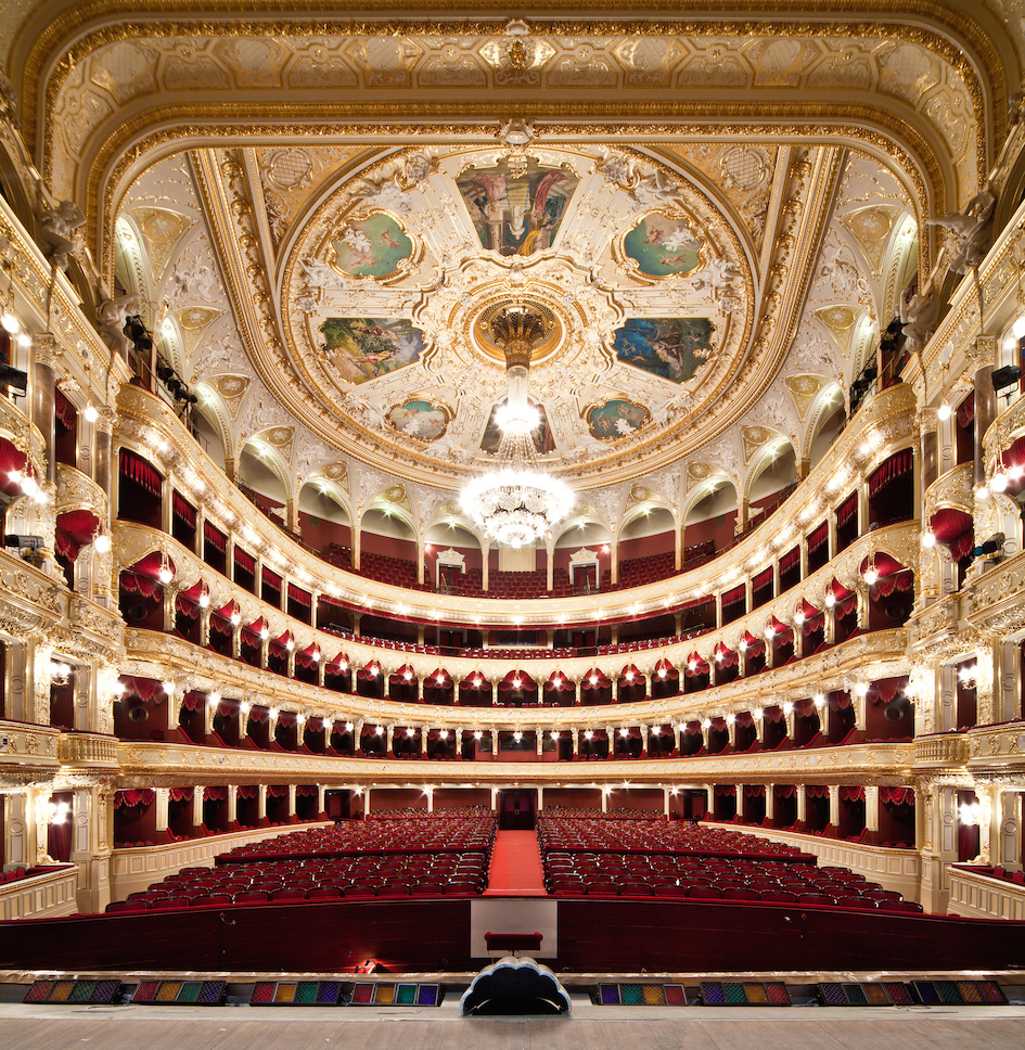 L’architetto Thomas de Thomon fu quello che disegnò il primo teatro d’opera nel 1810 che fu distrutto da un incendio nel 1873. Immediatamente fu aperta una sottoscrizione per ricostruire il nuovo teatro e il progetto vincente dei viennesi Ferdinand Fellner & Hermann Helmer fu il preferito per le sue linee curve che ricordavano il Semper Oper di Dresda.