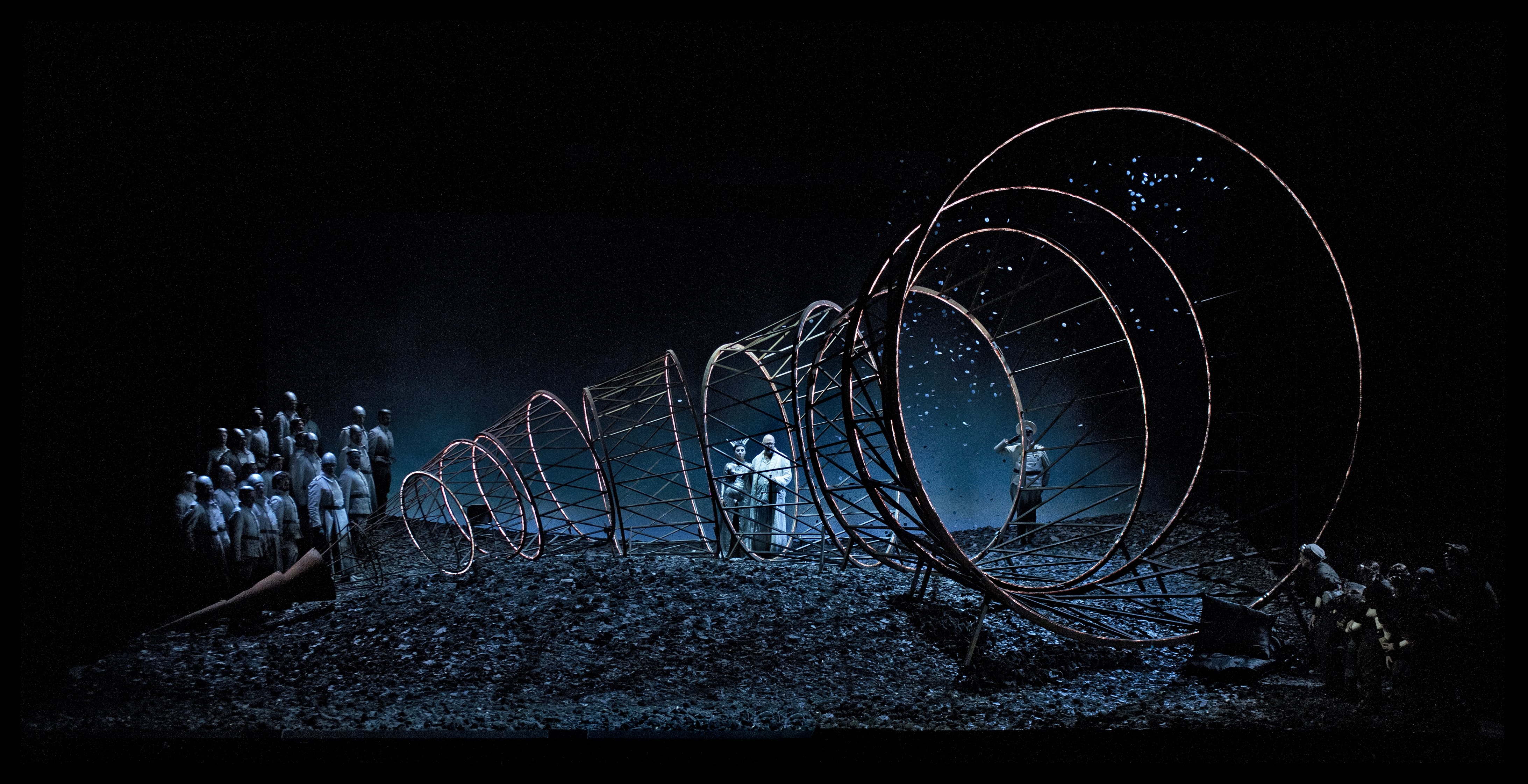 La colonna sonora non è preregistrata, come succede spesso in allestimenti locali o in teatri di periferia, ma lussuosamente fornita dall’orchestra del Teatro Regio, diretta con passione da Donald Chan, un allievo di Bernstein, che della partitura mette in luce le influenze stravinskiane e jazzistiche, la sapiente costruzione armonica, il trascinante andamento ritmico e la sorprendente bellezza delle canzoni. Maria, Tonight, Somewhere sono tra i motivi più belli scritti per il teatro del Novecento e costituiscono l’aspetto più seducente del lavoro. È difficile non essere soggiogati dalle loro indimenticabili melodie.