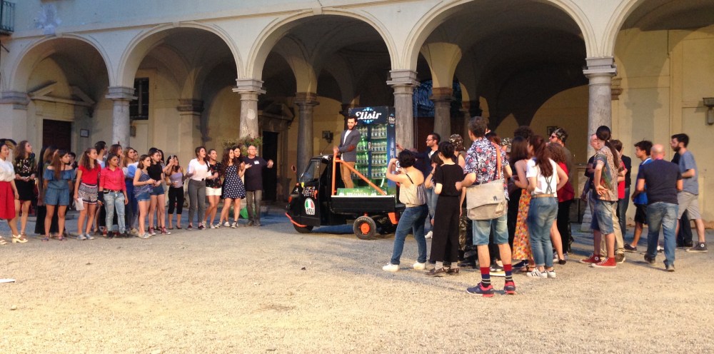 Dopo la riscoperta di Pesaro del 1984 ben pochi hanno rimesso le mani su Il viaggio a Reims, essendo indelebile il ricordo di quella mitica edizione. Ci prova però Dario Fo, che qui a Genova propone una sua versione ampiamente rimaneggiata, anche nel libretto, che era stata presentata a Stoccolma e a Helsinki.