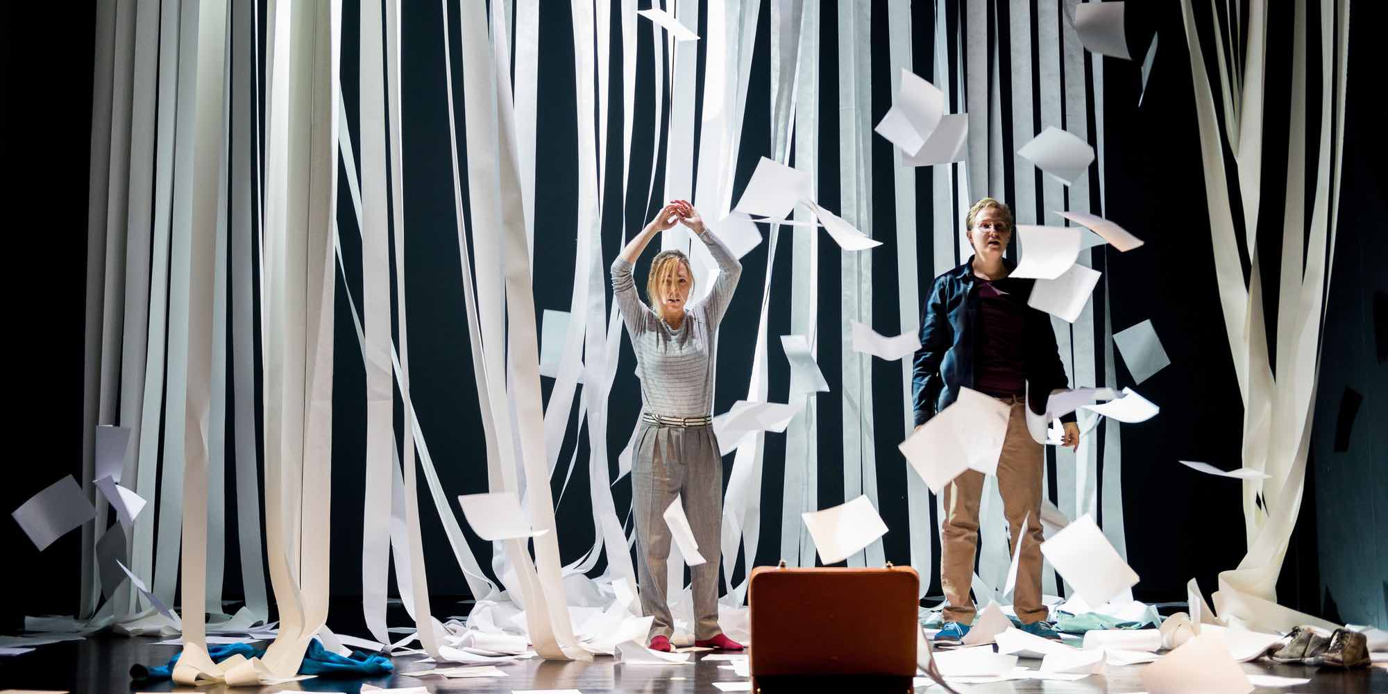Il lavoro di Dobrzyński è un’opera buffa e come l’originale da cui deriva è in tre atti in cui si alternano brani parlati a numeri cantati. Lo stile atonale lucidamente ricreato da Przemysław Fiugajskie a capo dell’Opera Sinfonietta ha come modello il Naso di Šostakovič di cui riprende lo stile grottesco, già comunque presente nella pièce teatrale, ma la prosa allucinata e visionaria di Gombrowicz qui trova solo un pallido corrispettivo in questo allestimento dell’Opera da Camera di Varsavia al MuTh (Musik&Theater) di Vienna. Il regista Jerzy Lach porta al parossismo la differenza fra le due classi sociali preminenti, con l’aristocrazia costretta nei corsetti delle regole e delle norme, stretti come la loro apertura mentale. Lo stile dei loro abiti è pomposo come il loro parlare e stravagante come il ripetuto gestire. La recitazione, i ricchissimi costumi (il costumista non è citato nella locandina dello spettacolo) e la scenografia tutta specchi di Jerzy Rudzky compongono uno spettacolo comunque visivamente attraente. Omogenea la compagnia polacca formata da efficaci cantanti-attori.
