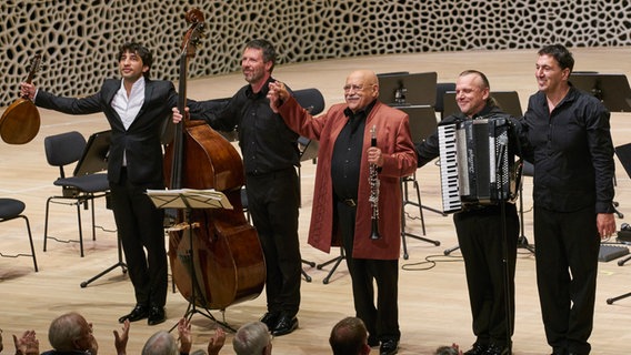 Tre soggetti diversi si incontrano per il concerto nel meraviglioso nuovo auditorium dell’edificio affacciato sull’Elba della città anseatica: il giovane Avi Avital, virtuoso di mandolino; l’81enne Giora Feidman, clarinettista argentino attivo in tutti i generi musicali ma conosciuto come il “re del klezmer”; la Kremerata Baltica, l’eccezionale orchestra d’archi, qui senza il loro fondatore e direttore Gidon Kremer.