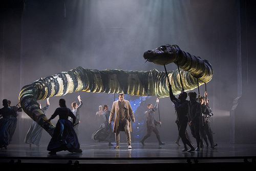 Nel teatro di McVicar c’è la perfezione di una visione che non stravolge: qui c’è il serpente che minaccia Tamino («die listige Schlange»), ci sono i leoni del carro di Sarastro, i simboli massonici (la luna e il sole), tutti perfettamente realizzati e inseriti nelle scenografie ora solenni ora incantate di John MacFarlane (suoi anche i bellissimi costumi settecenteschi) immerse nelle luci magiche di Paule Constable. McVicar è talmente fedele al libretto che si può prendere alcune libertà, come Papagena che la prima volta non appare come una vecchia (da cui la battuta degli «achtzehn/achtzig Jahr und zwei Minuten») bensì come una peripatetica disinibita; o il fuoco e l’acqua delle prove dei due giovani, rappresentati da degli umani che si agitano come fiamme o boccheggiano come sommersi in un liquido.