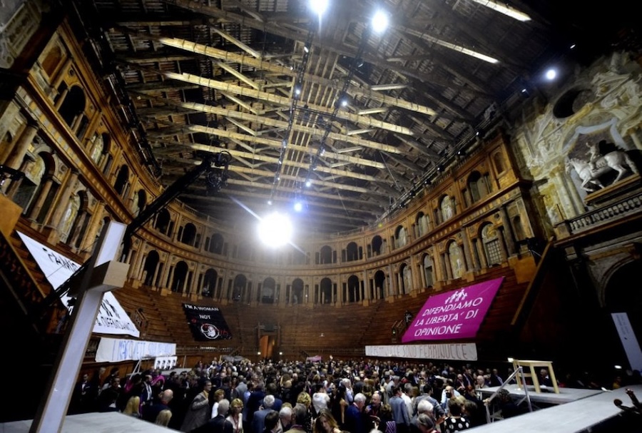 Ebbene sì, il Festival Verdi si apre, finalmente, a nuove letture. «La nuova missione» la definisce Anna Maria Meo, direttore generale del Teatro Regio. Quello che è del tutto usuale in tutti i festival lirici del mondo, qui non si era ancora tentato. Merito degli organizzatori – e di Ranuccio I duca di Parma e Piacenza che nel 1618 fece costruire dall’Argenta al primo piano del palazzo della Pilotta un meraviglioso teatro di legno del tutto inadatto alle rappresentazioni, per lo meno di quelle che intendiamo noi oggi – l’aver deciso di utilizzare uno spazio da affidare all’ingegno dei registi per allestire opere liriche in modo inusuale, “Maestri al Farnese”, già inaugurato l’anno passato. (1)