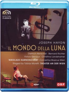 Tobias Moretti dopo Il commissario Rex dei telefilm aveva esordito come regista nel 2001 (un Don Giovanni a Bregenz) e prima di questo Mondo della Luna ha allestito la simpatica Finta giardiniera di Zurigo del 2006. Qui al Theater an der Wien nel 2009 il risultato è molto meno convincente, con la solita ambientazione moderna ma senza ironia, costumi orribili e un palcoscenico riempito a caso con cantanti che non sanno come muoversi e allora rimangono in scena perché nessuno ha detto loro di uscire. Per di più sono latitanti le doti attoriali dell’interprete di Buonafede, un Dietrich Henschel refrattario all’umorismo oltre che vocalmente poco gradevole. Sul piano vocale le cose non vanno meglio con l’Ecclitico di Bernard Richter, di piacevole aspetto e spigliato, ma insopportabile nei recitativi mezzo parlati e dalla dizione improponibile. Ma il peggio lo dà, ahimè, il Markus Schäfer di Cecco, che assomma i difetti dei precedenti.