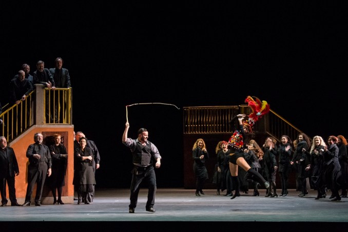 Tanto il dramma di Poulenc è una vicenda individuale, quanto Cavalleria si presenta come un bozzetto popolare che finisce in tragedia. La regista siciliana ha buon gioco a spingere sul pedale della religiosità morbosa e opprimente affollando la scena di sacre rappresentazioni (via crucis con Cristo nero) e gruppi statuari (citazione del bolognese Compianto sul Cristo morto di Niccolò dell’Arca), oppure sul lato circense (le “cavalle” di Alfio) o da teatro dei pupi. Con forzature e momenti più o meno convincenti la Dante conferma comunque il suo innegabile istinto teatrale.