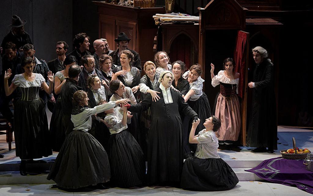 Il tutto avviene grazie a un cast eccezionale che ha in Philippe Talbot il personaggio titolare. All’inizio non perfettamente a fuoco, il tenore di Nantes diventa via via più sicuro per rivelarsi poi strepitoso sia scenicamente sia vocalmente, giocando tra la finezza e la caricatura. Con un’efficace mimica facciale e un timbro ora luminoso ora sfumato riesce a costruire il suo personaggio con umorismo ed eleganza. Julie Fuchs è un’aristocratica che non vede l’ora di assaggiare il frutto proibito che le viene offerto non tanto dall’inesperto Isolier quanto dal navigato Ory. Anche lei strepitosa in scena (dall’ingresso da tragédienne del primo atto alla “follia” del secondo) sfoggia un bel timbro e acuti ben proiettati. Superlativi sono anche l’Isolier di Gaëlle Arquez e il Raimbaud di Jean-Sébastien Bou, mentre un po’ ingessato è il precettore di Patrick Bolleire. Anche i personaggi minori della contessa di Formoutier e di Alice trovano in Ève-Maud Hubeaux e Jodie Devos interpreti eccellenti.