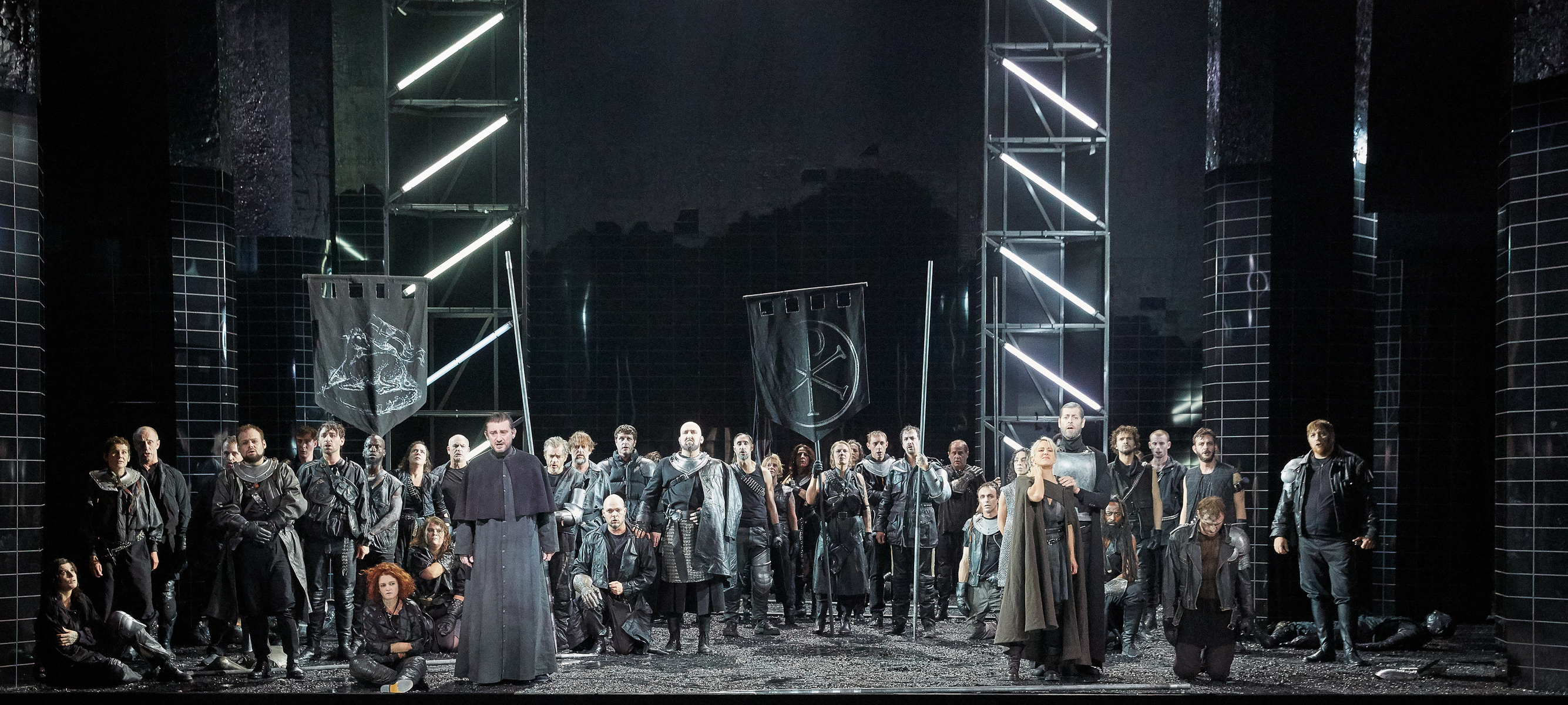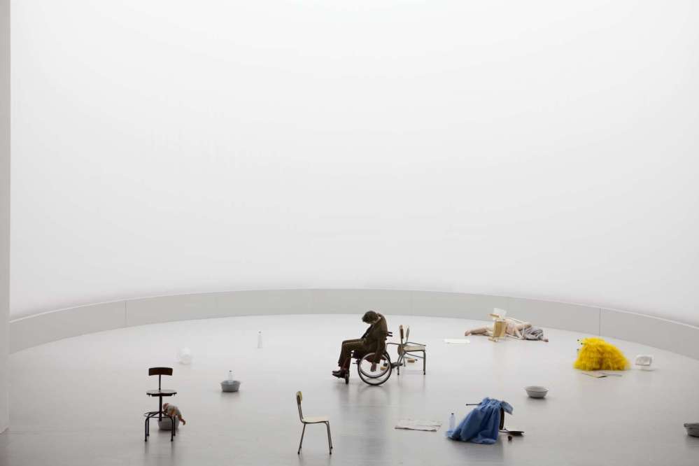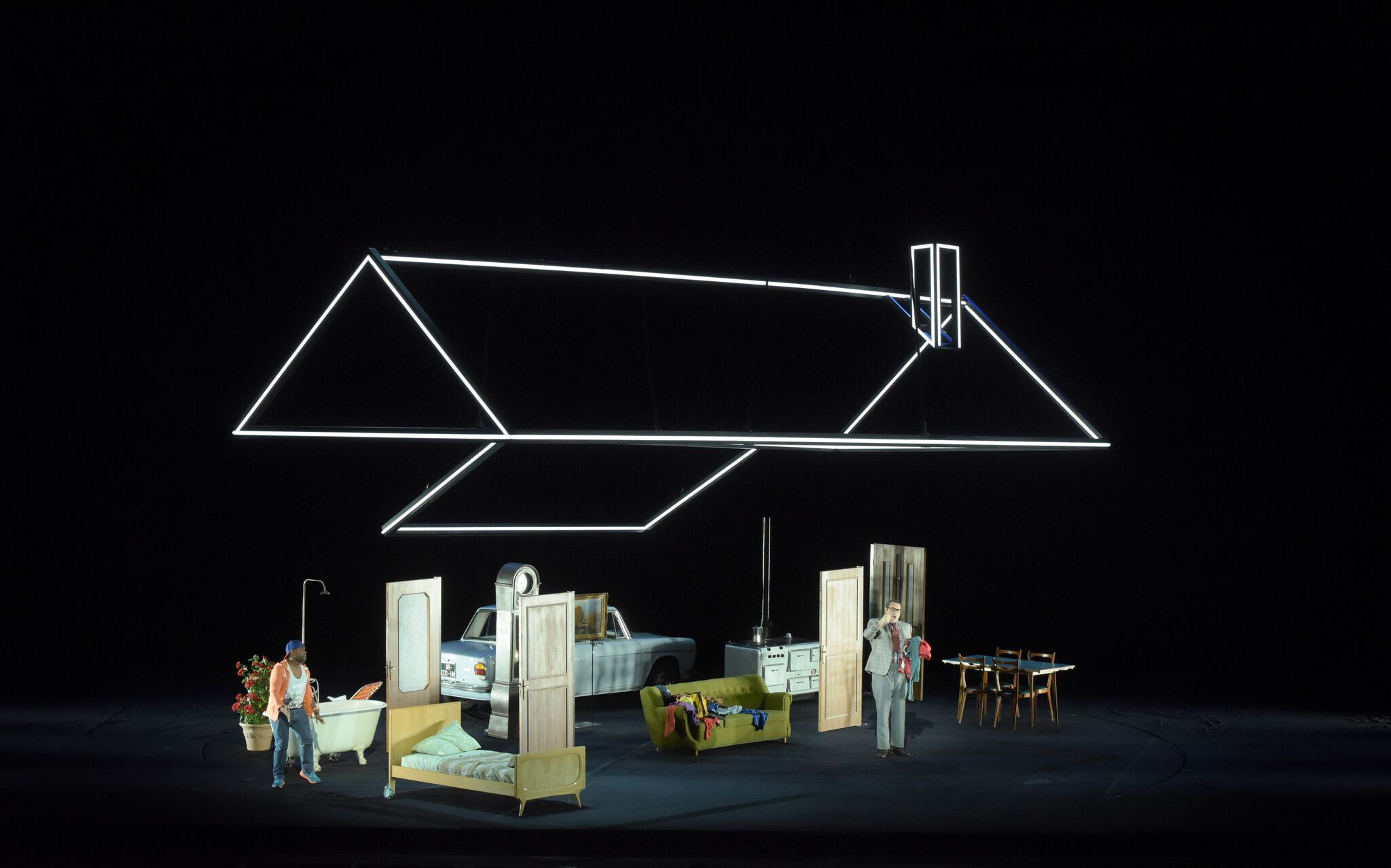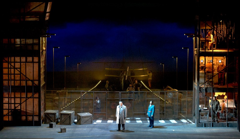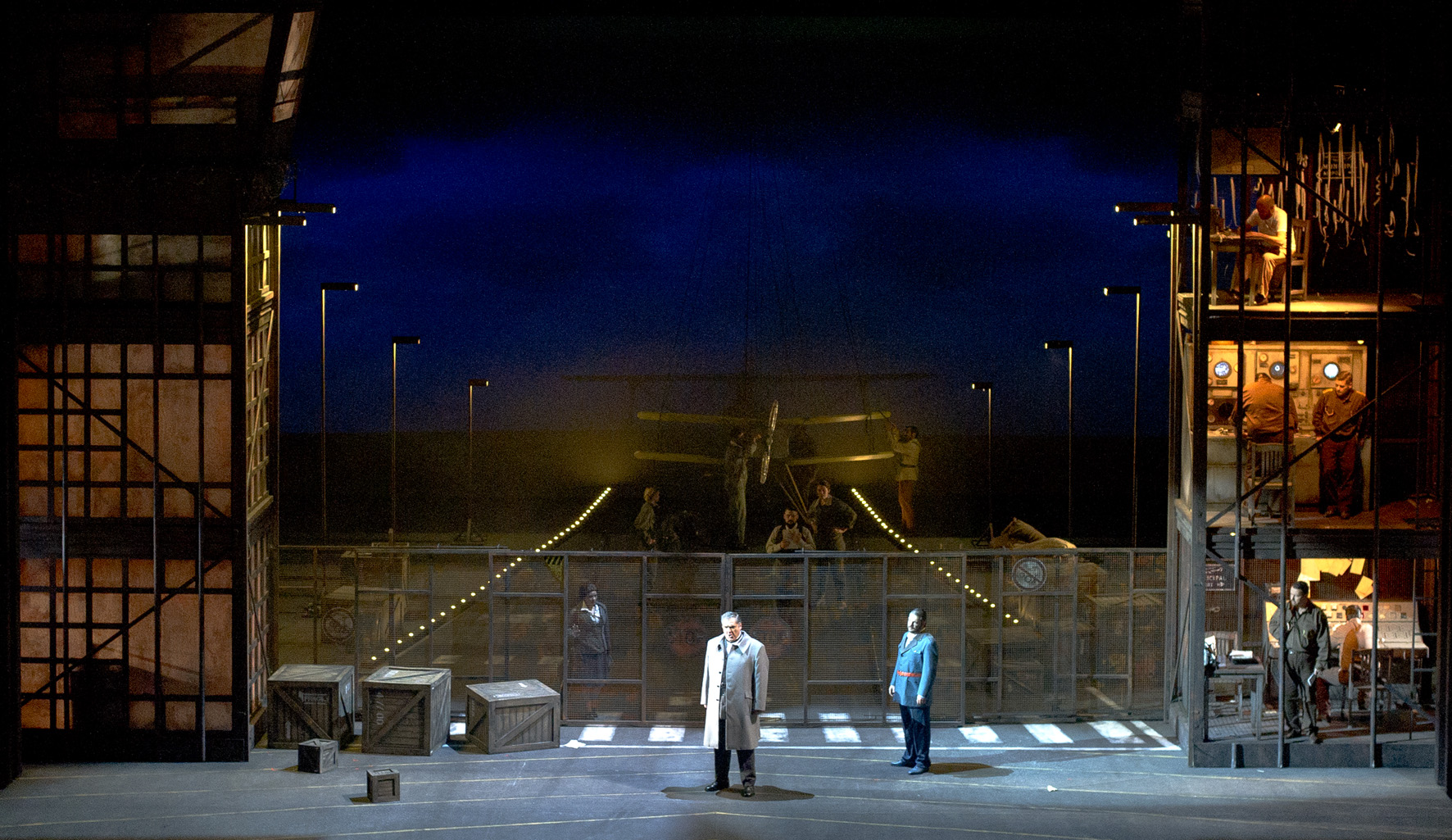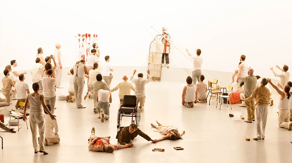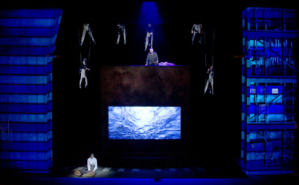 Le stesse strutture laterali erano state utilizzate per il Volo di Notte, qui collegate da una rete che separa il pubblico dagli ufficiali della base aerea immersa nella notte. Allievo di Umberto Eco, il regista polacco vede il lavoro come un’“opera aperta” che deve correlarsi alla storia dell’Argentina.