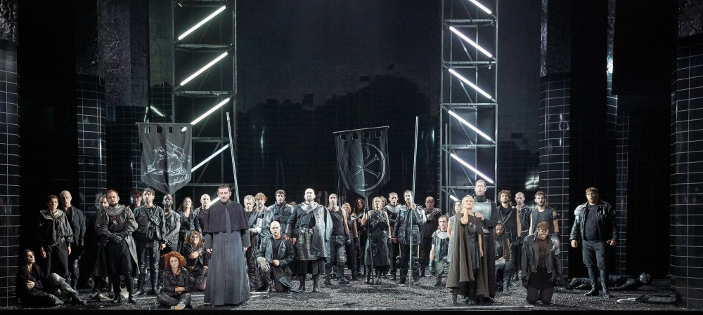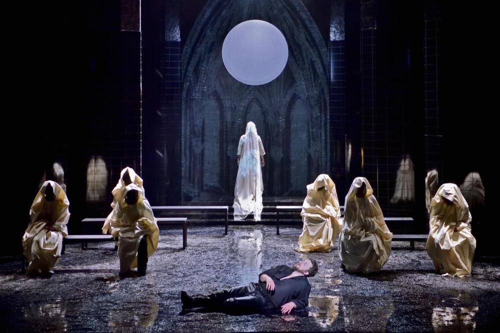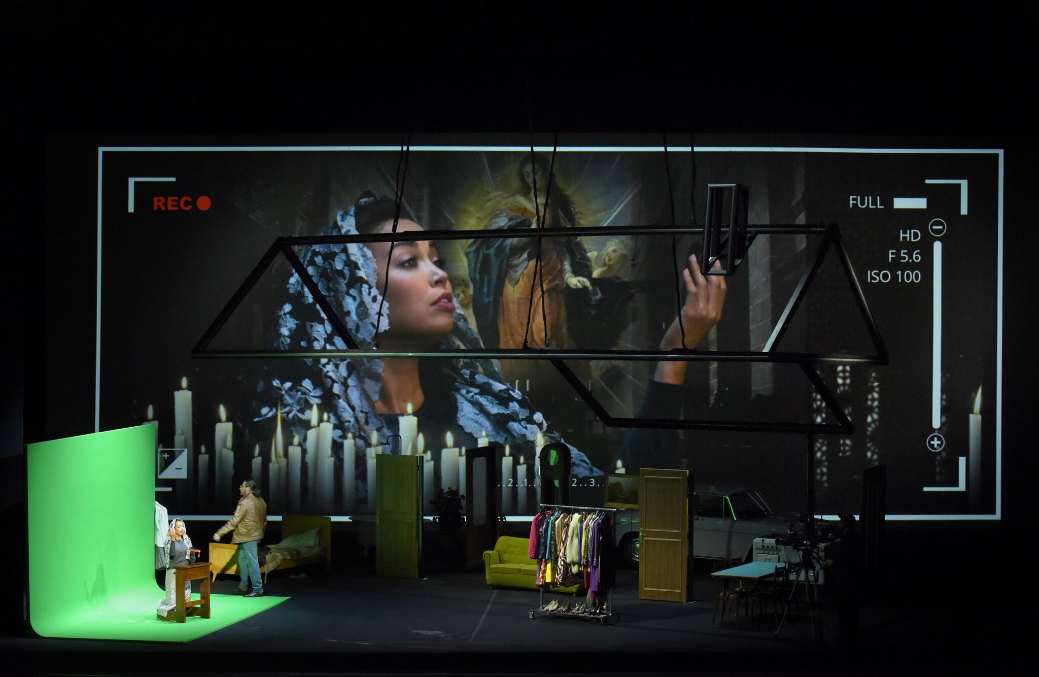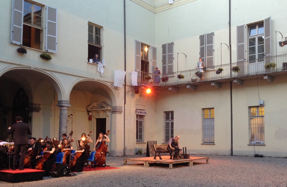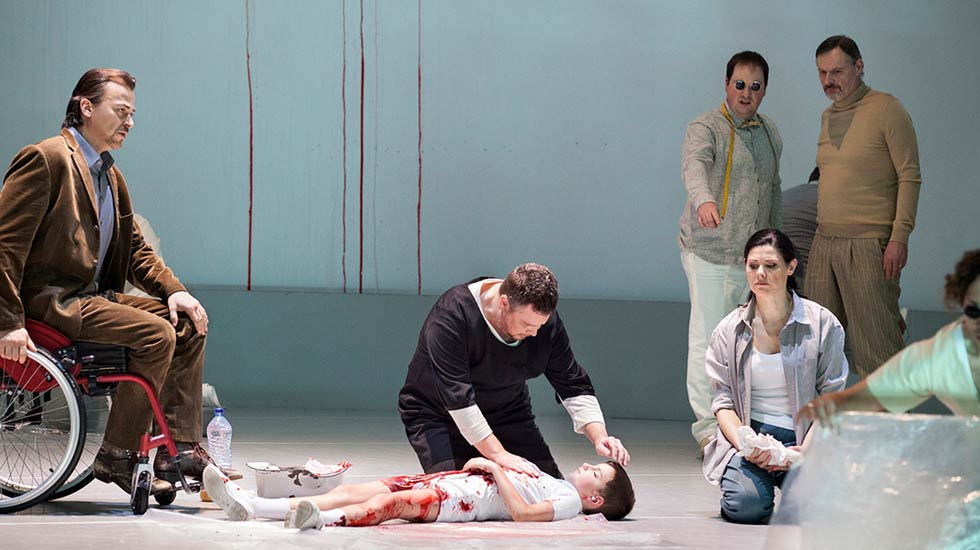 La lurida cella con le piastrelle lorde di sangue è anche la stanza della tortura, un cubo che ruota di cui vediamo sia l’interno sia l’esterno. Il carceriere controlla il prigioniero dai video della sua guardiola, la stessa dell’aeroporto del Volo di notte. I cadaveri di giovani vengono portati via e i loro documenti distrutti mentre acrobati appesi a corde rappresentano angeli della morte che gettano in mare i corpi. Nel finale dopo la presa di coscienza del Prigioniero («S’è fatta luce! Vedo! Vedo! | La speranza… l’ultima tortura… | Di quante mai sofferte, la più atroce… ») sul palcoscenico si uniscono ai carcerieri persone comuni in abiti contemporanei. Siamo noi, testimoni muti e impotenti degli orrori dei nostri giorni. La violenza esplicita, impensabile nelle messe in scena del passato, oggi è appena sufficiente a colpirci e su questo punta il regista.