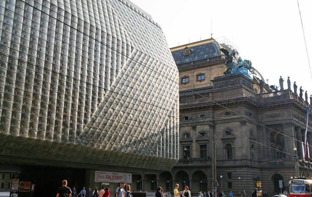 Cosa fa una città che ha già quattro teatri per l’opera? Ne costruisce un quinto, moderno, che si affianca allo storico Teatro Nazionale che già utilizza altre due sale. Negli anni ’70, dunque, nella ricostruzione urbanistica della città parte il progetto di questo nuovo edificio che sarà completato nel 1983. Inizialmente concepito per Laterna Magica di Josef Svoboda, in seguito su progetto di Karel Prager divenne uno spazio multifunzionale così da ospitare vari tipi di spettacolo.