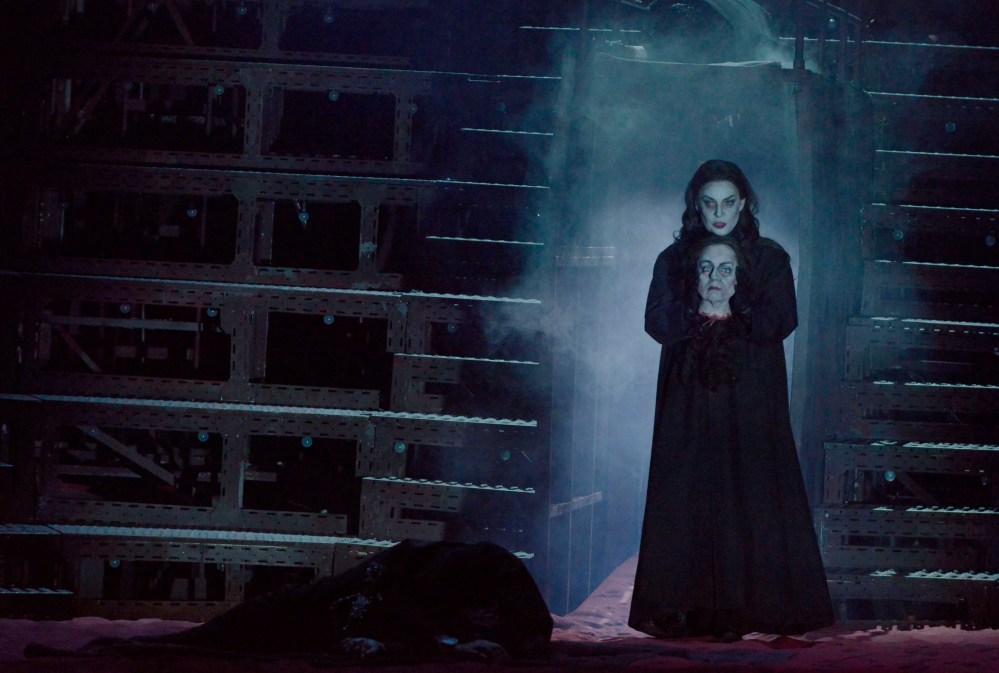 Tito Ceccherini, sapiente interprete del repertorio moderno, domina con sicurezza l’orchestra, cangiante sia dal punto di vista armonico che ritmico e tale da creare un certo smarrimento nell’ascoltatore. L’allusiva partitura, che ha echi nel primo Novecento, in Stravinskij e nella Scuola di Vienna, sottolinea le efferatezze in scena con suoni lancinanti, gesti violenti, drammatici. Dal prologo, “The Boar Hunt” (La caccia al cinghiale), costruito come un grande crescendo pieno di suoni di natura, alle scene che seguono – nove nel primo atto e sette nel secondo – Ceccherini costruisce un’atmosfera sinistra, punteggiata da momenti di suspense in questa corsa sfrenata e crudele verso il potere. Grande è il ruolo delle masse corali: una in scena, una dietro le quinte e una terza di voci bianche, tutte e tre impegnate nel finale a cappella.