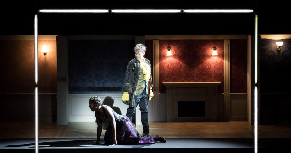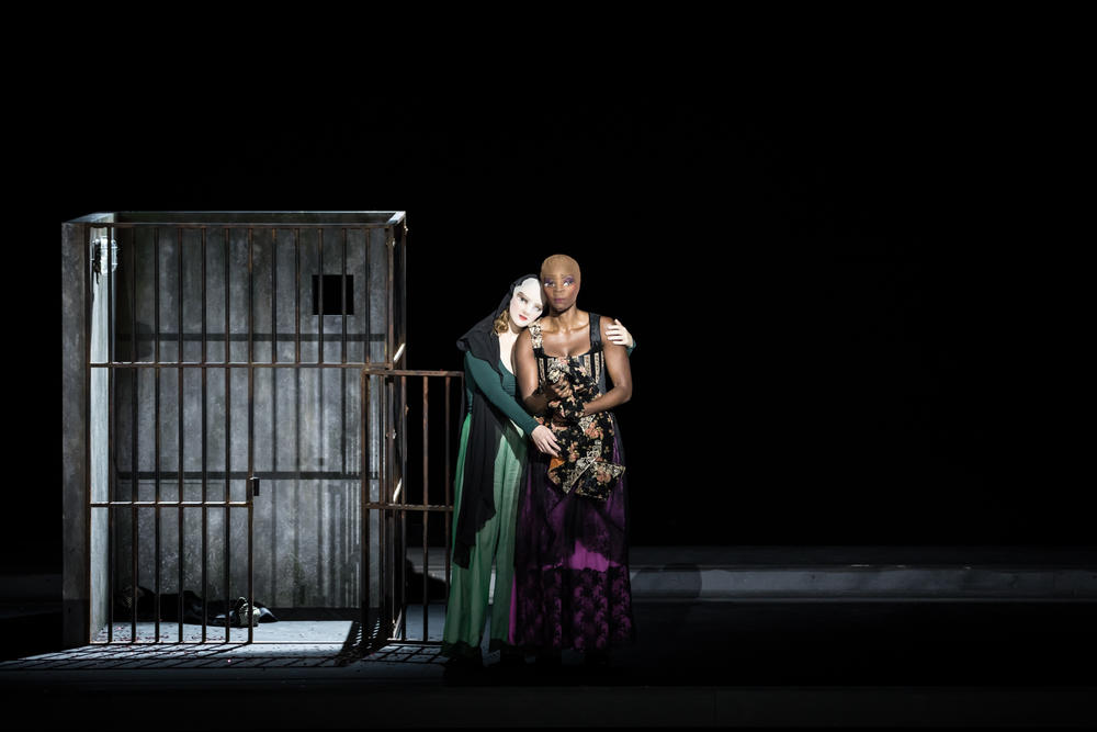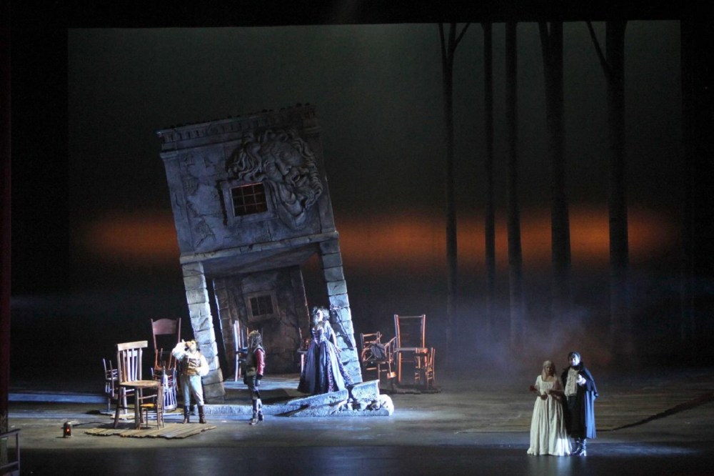 Ma sono l’aspetto registico e scenico a conquistare, a cinquant’anni e più dopo il debutto, il pubblico, e non solo quello cagliaritano. Livermore parte da suggestioni antiche per poi utilizzare tecniche modernissime: uno sperone roccioso su una piattaforma rotante costituisce l’elemento scenografico rotante. Sul fondo proiezioni in video grafica, della solita D-Wok, di un mare che si tinge di rosso sangue per poi diventare un paesaggio inaridito o un notturno firmamento durante il lungo duetto d’amore dei due giovani. Il regista fa esplicitamente riferimento all’Œdipus Rex di Matsumoto per i corpi coperti di argilla, le protesi che ingigantiscono i personaggi e le maschere che sormontano le teste, là a modello le statuette cicladiche qui quelle nuragiche. Lo scoglio è anche cruento patibolo per quello che all’inizio sembra il sacrificio di Isacco del racconto biblico e che presagisce l’uccisione di Torbeno da parte del padre. La rappresentazione è depurata dei tanti particolari accessori e ha una sua solennità cui contribuiscono gli interventi dei movimenti coreografici che recuperano i passi delle danze popolari dell’isola.