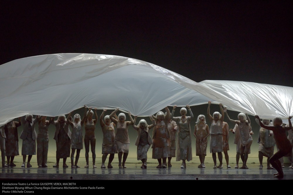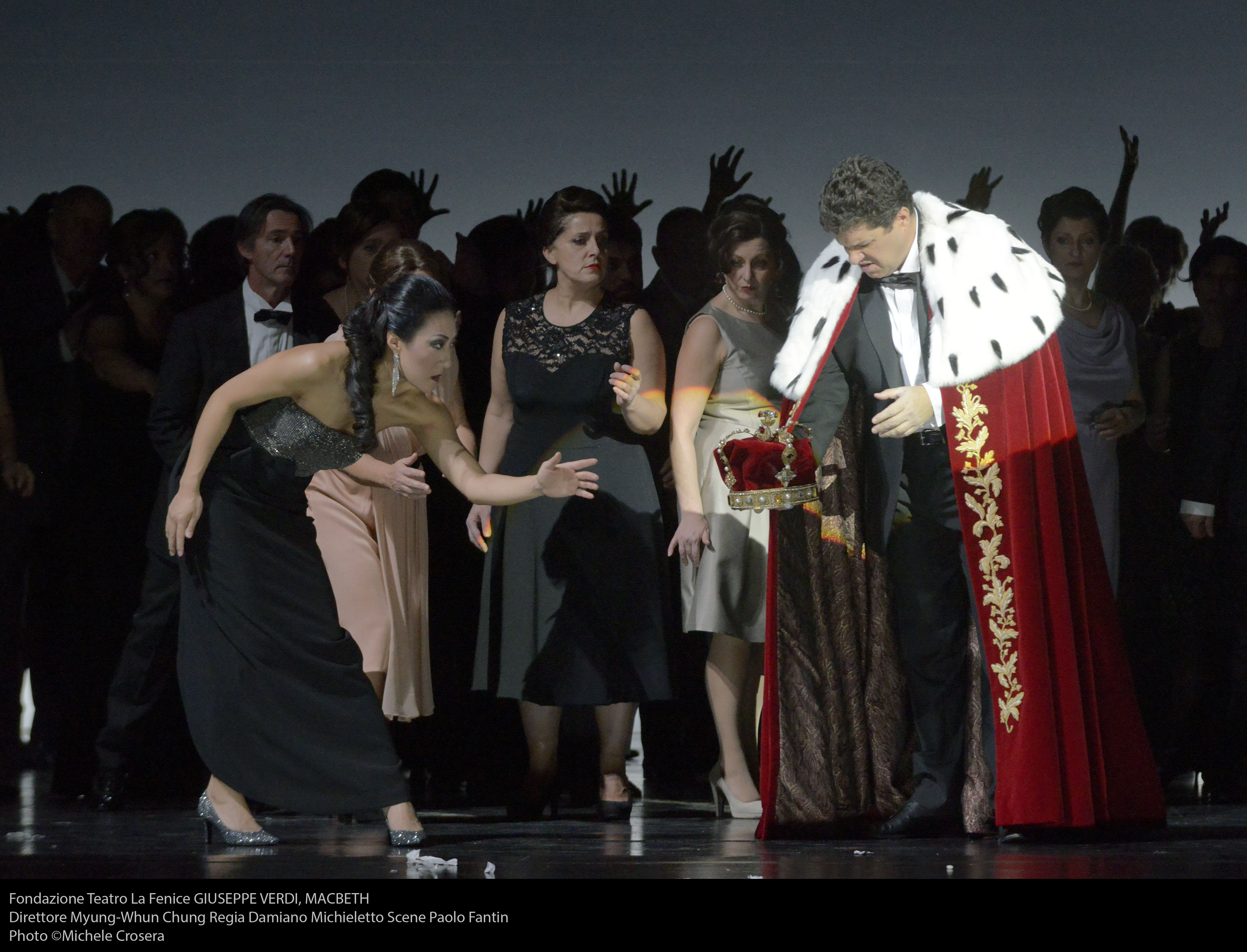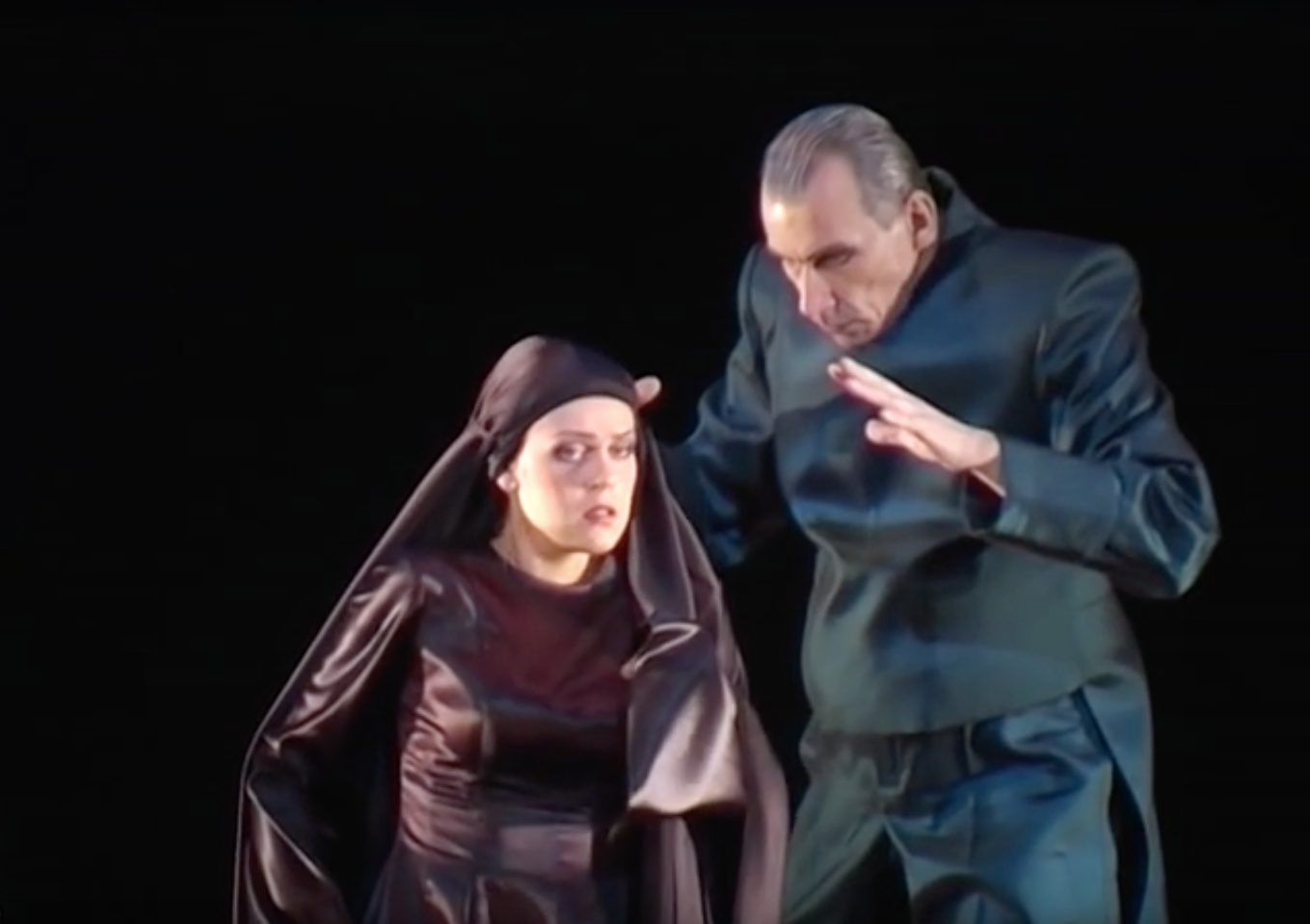Io non sono del tutto d’accordo con lo studioso americano e non lo è neppure Elvio Giudici per il quale nel lavoro dei due librettisti c’è una «migliore modellatura della vicenda, che acquista parecchio sia in comprensione sia in logica di sviluppo pur sfumando parecchie fisionomie la cui sgradevolezza sarebbe invece importante snodo drammaturgico. L’abbastanza repellente figura di Raimondo, classico leccapiedi del potente pronto a ogni riscatto morale pur di favorirne i disegni, perde rilievo circoscrivendo la sua presenza». Diverso il discorso per la parte titolare: l’eliminazione dell’aria “Regnava nel silenzio” sostituita dalla traduzione di “Perché non ho nel vento” della Rosmonda, porta alla perdita del “fantasma” (di cui si è fatto eccessivo uso nelle regie più recenti) e a una minore definizione del personaggio di Lucie – se in scena non ci fosse però Natalie Dessay… Geniale è invece aver eliminato il personaggio di Alisa: Lucie rimane l’unico personaggio femminile in questo universo dominato dal testosterone maschile. Nell’allestimento di Patrice Caurier e Moshe Leiser anche il coro della festa è rappresentato tutto al maschile, le scenografie sono essenziali e tutto è lasciato in ombra affinché risalti la psicologia dei personaggi evidenziati da intensi primi piani dalla regia video. Costumi d’epoca di grande eleganza e luci radenti formano uno spettacolo intrigante.