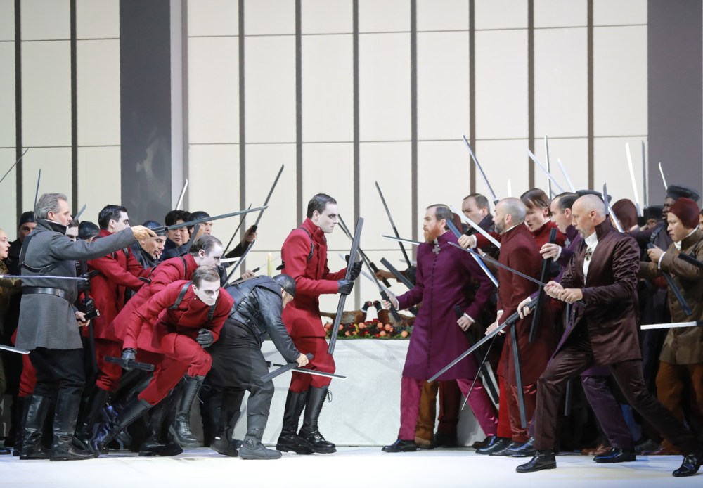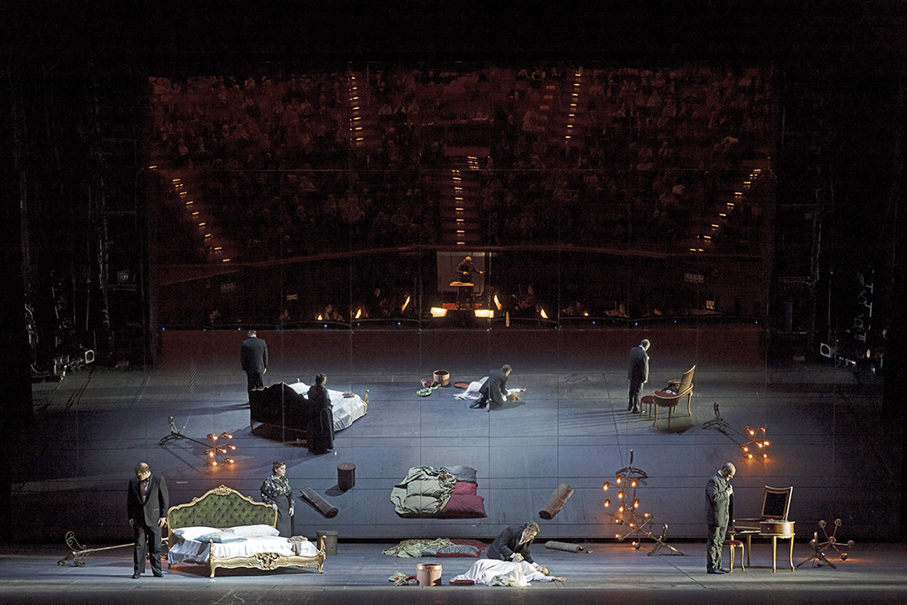 Sembra una scommessa audace aver voluto affidare a degli inerti burattini di legno il compito di esprimere la ricca gamma dei sentimenti (folle amore, cieca gelosia, ferocia, malinconia, amore coniugale) espressi in questa storia che non si fa mancare un quanto mai improbabile lieto fine. Eppure l’interazione fra pupi, pupari e cantanti riesce alla perfezione e conquista un pubblico smaliziato. Assieme ad Alexandre Rübner, Cuticchio ha concepito uno spettacolo illuminato da candele e con deliziosi fondali dipinti che ha la magia di un teatro ricreato nella sua poetica essenzialità.