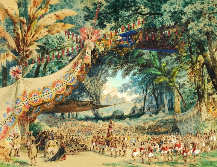 Carlo Ferrario, “Campo degli Aimoré”, acquerello per la prima produzione de Il Guarany al Teatro alla Scala, 1870