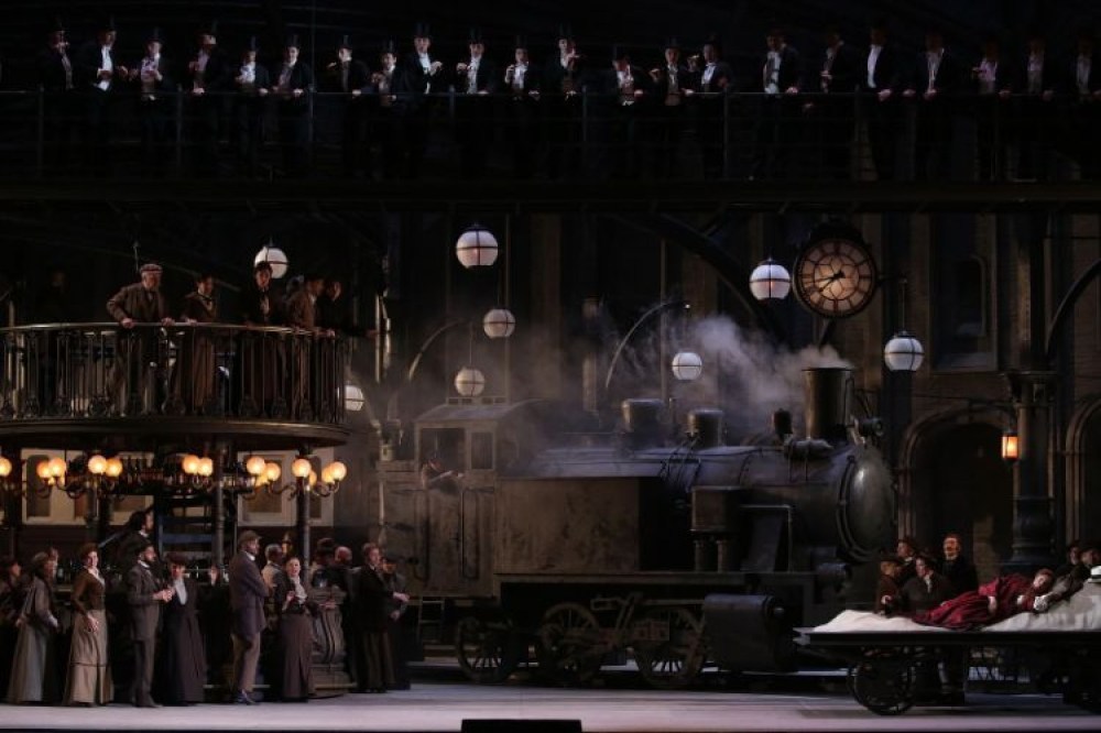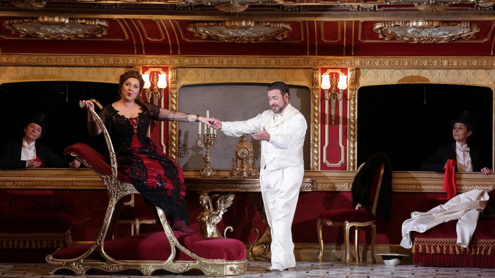 Con la stessa regista e scenografa di Written on skin, ossia Katie Mitchell e Vicky Mortimer, la stessa protagonista femminile, Barbara Hannigan (e il medesimo librettista), la storica vicenda viene ambientata ai nostri giorni e in un unico spazio, la camera da letto del re – con un acquario digitale (che qualcuno ha scambiato per un acquario vero denunciandone la follia del costo e del peso!), un quadro di Francis Bacon e una libreria piena di preziosi reliquarii. Un ambiente chiuso dove far svolgere la cruenta parabola in cui il potere vince sulla vita e sull’amore, uno spazio che nel tempo cambia punto di vista e perde dettagli: i quadri spariscono, così i reliquarii e i pesci nella vasca, a mano a mano che le relazioni fra i componenti di questa famiglia diventano sempre più conflittuali. Solo il letto resta, al centro della camera. Il cambiamento della prospettiva realizzato in scena è meno evidente nella regia video di Margaret Williams che aggiunge riprese zenitali, un po’ inutili, e primi piani di gusto cinematografico.
