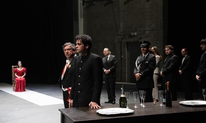 Il grande palcoscenico delle Fonderie Limone è vuoto, cassa di risonanza dei personaggi. Ben 37 quelli previsti, qui opportunamente ridotti e affidati a una compagnia che si è formata proprio con questo spettacolo tanto di identificarsi come Lemon Ensemble! Dodici attori con più ruoli, inizialmente sotto tono, poi sempre più intensi in un crescendo emotivo molto ben costruito dal regista. Se è doveroso citare Gabriele Portoghese (Amleto), Michele di Mauro (il re), Mariangela Granelli (la regina), Giulia Mazzarino (Cordelia) e Christian di Filippo (Orazio), una menzione speciale merita Nicola Pannelli, efficacissimo Polonio e poi becchino. Ma anche tutti gli altri caratterizzano al meglio i personaggi loro assegnati.