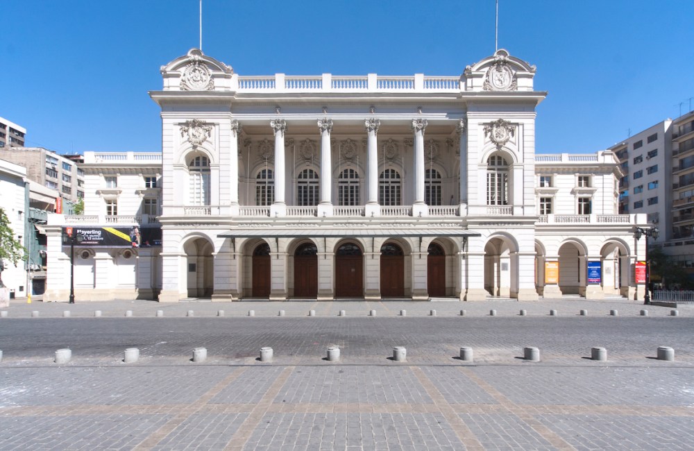Un decreto del 1853 del presidente Manuel Montt prevedeva la costruzione di un teatro municipale nella capitale della sua nazione, una città in rapida crescita. L’architetto cileno francese Claudio Brunet des Baines fu incaricato della sua progettazione e la costruzione fu affidata a un altro ingegnere civile cileno, Felipe Charme de l’Isle. Brunet des Baines creò un esterno neoclassico francese per il teatro, sebbene la sua morte nel 1855 lasciasse la supervisione del progetto al suo connazionale, Lucien Henault e all’assistente di quest’ultimo, Manuel Aldunate. Il nuovo team beneficiò anche di una collaborazione con Charles Garnier, l’architetto dell’Opéra national de Paris. Il Teatro Municipale fu inaugurato il 17 settembre 1857, con l’opera Ernani, eseguita da una compagnia italiana portata appositamente per l’occasione. All’epoca il teatro ospitava 1.800 spettatori e includeva particolari dettagli al suo interno, come un lampadario a goccia in cristallo. L’8 dicembre 1870 l’esibizione della diva dell’opera Carlotta Patti fu seguita da un enorme incendio, che praticamente distrusse l’edificio. Una rapida risposta sia del governo locale che dell’alta società cilena portò alla pronta ricostruzione del teatro, progettata da Henault e completata il 16 luglio 1873. La sua reinaugurazione fu accompagnata da una rappresentazione de La forza del destino di Verdi.