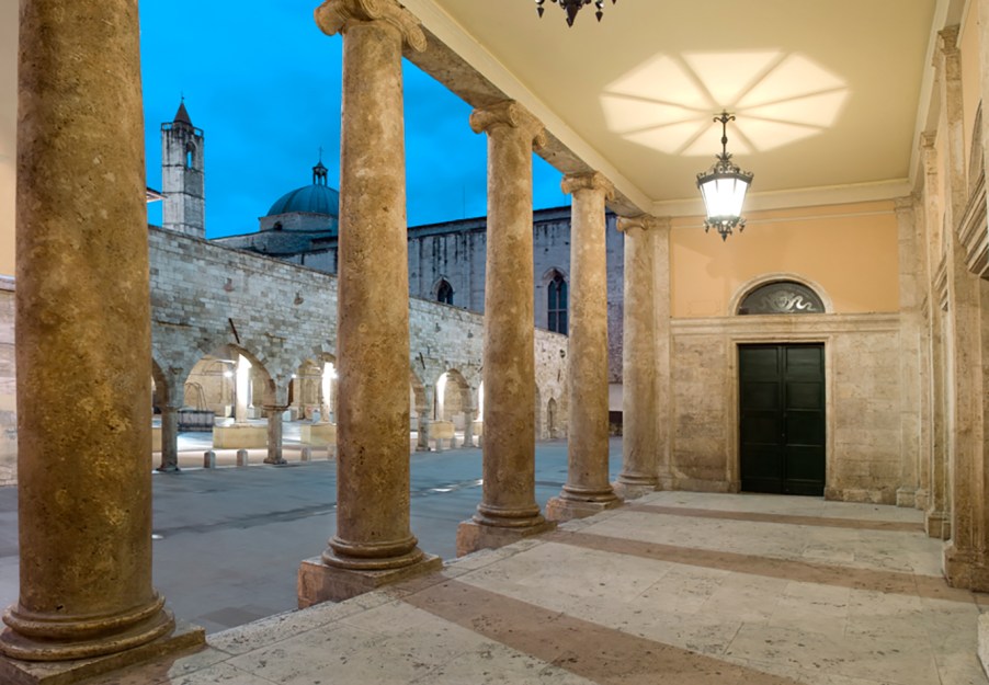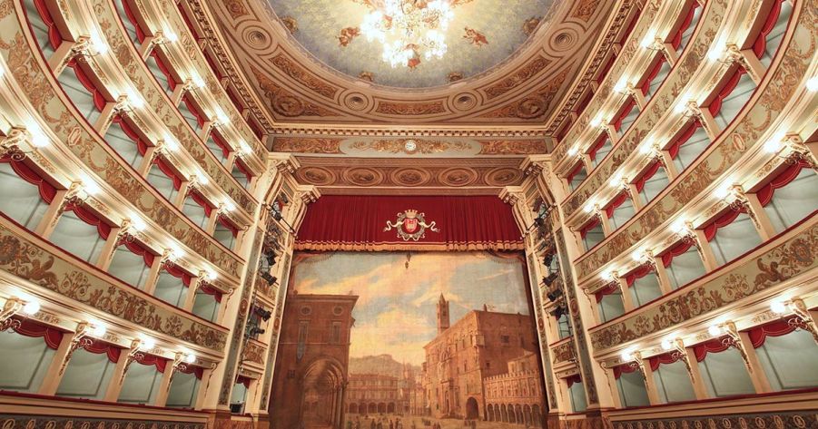 La storia del Teatro Ventidio Basso comincia nel 1839, quando il consiglio comunale di Ascoli Piceno delibera la costruzione di un nuovo teatro da sostituire a quello di legno che aveva sede all’interno del palazzo dell’Arengo. Per Ascoli Piceno si tratta di una millenaria tradizione culturale proveniente dall’antico Teatro Romano adiacente la Porta Gemina e dall’Anfiteatro di Piazza San Tommaso. Nel 1839 il progetto del nuovo teatro fu affidato ad Ireneo Aleandri, già ideatore dello Sferisterio di Macerata e del Teatro Nuovo di Spoleto e venne stabilita anche la sede del teatro nel palazzo di Via del Trivio. Dalla data in cui fu messa la prima pietra, nel 1841, alla conclusione dei lavori il percorso che portò alla costruzione fu assai complesso. Tra ostacoli e resistenze, alla fine i lavori già avviati furono affidati all’architetto Giovan Battista Carducci. All’apertura, che fu evento solenne, due grandi recite: Ernani e I Puritani. Il dedicatario del teatro fu Publio Ventidio Basso, un eroe ascolano del I secolo d.C. che Pompeo Magno elevò al grado di console per le sue eroiche gesta.