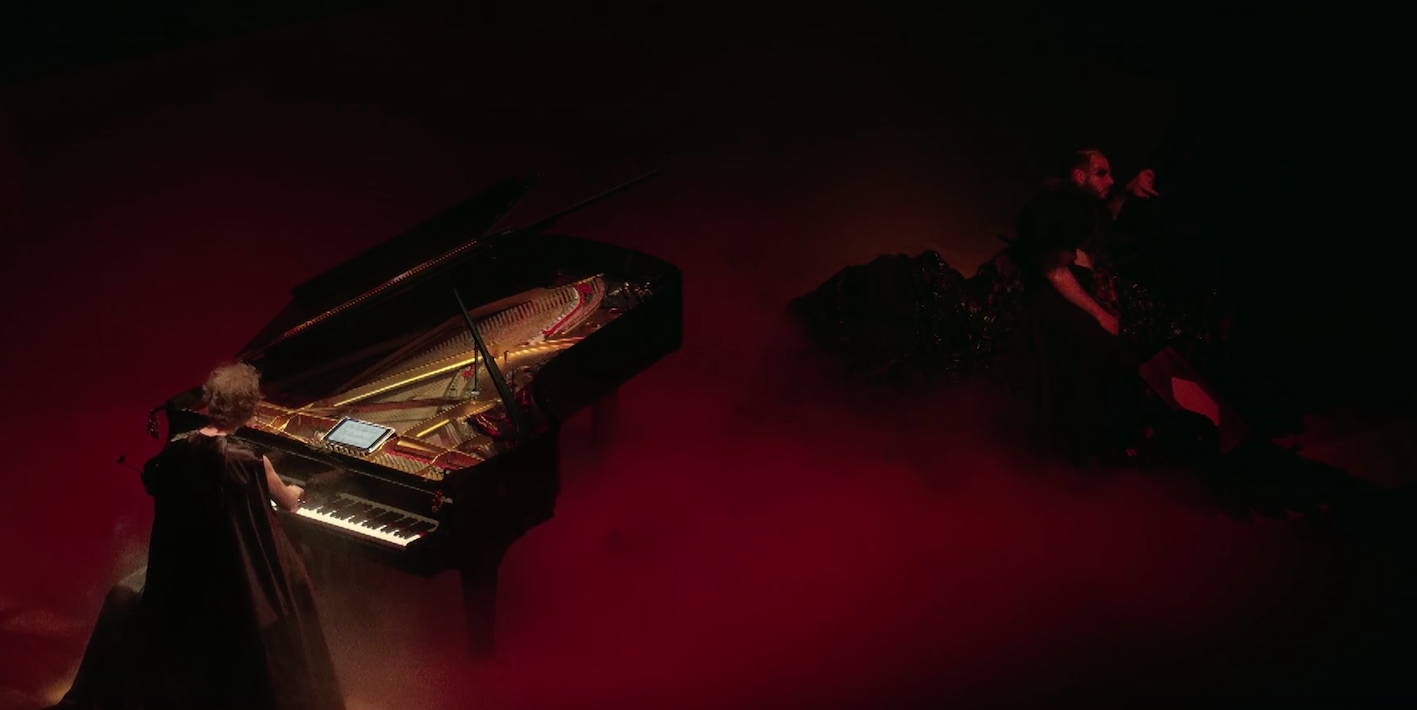 Nel “sogno di Lucifero” (36 minuti), due sole sono le persone presenti: un pianista e un basso (Lucifero), il quale recita un rituale per annientare il tempo. In un’atmosfera rossastra i due performer occupano un piccolo spazio senza quasi muoversi per poi scomparire. Il pianoforte è sfruttato in tutte le sue possibilità sonore, anche le più inedite, mentre la voce si esprime in un declamato atonale di numeri – l’esoterismo è tra gli ingredienti di quest’opera di Stockhausen. Anche il bravissimo Damien Pass (Lucifero) utilizza in modo sorprendente tutte le possibilità del suo strumento: oltre al canto grida, soffi, sospiri, singhiozzi, respiri.