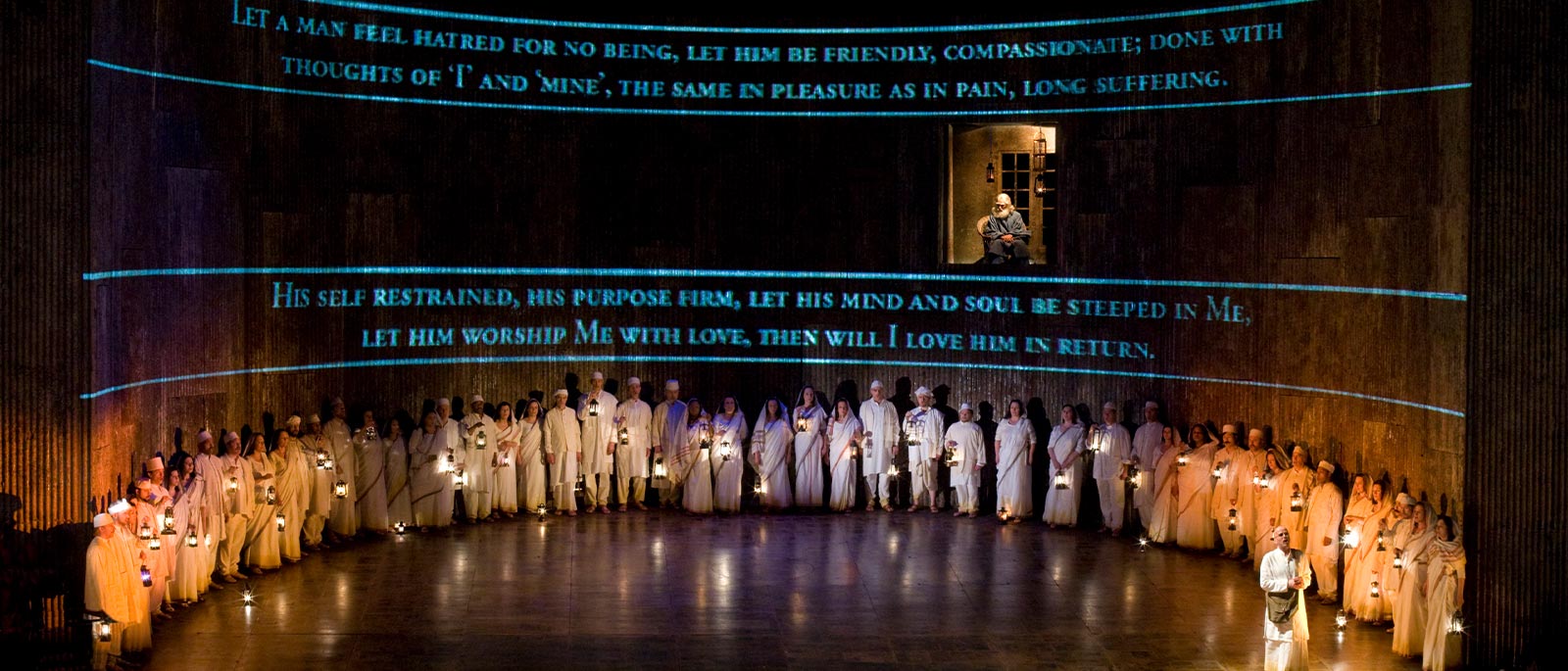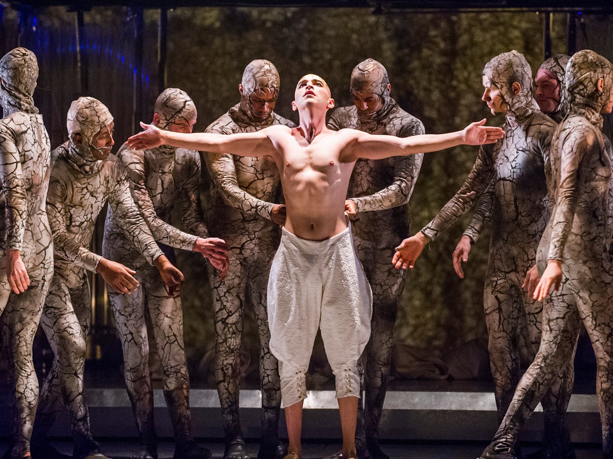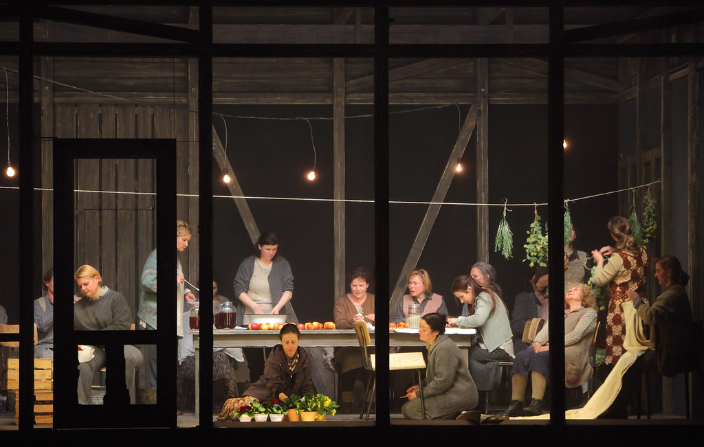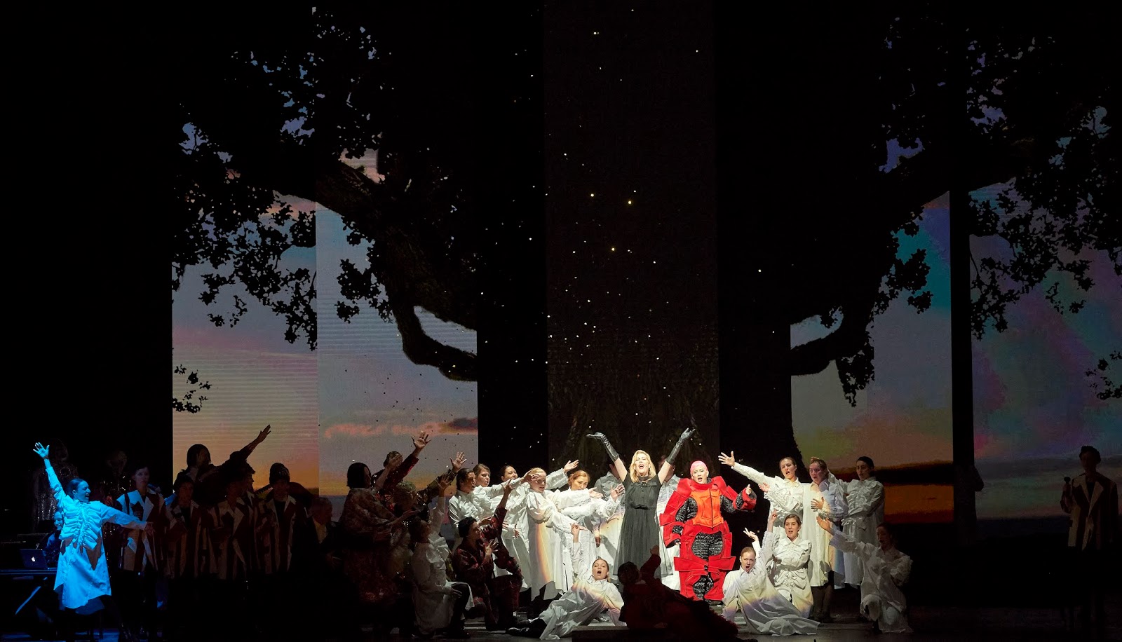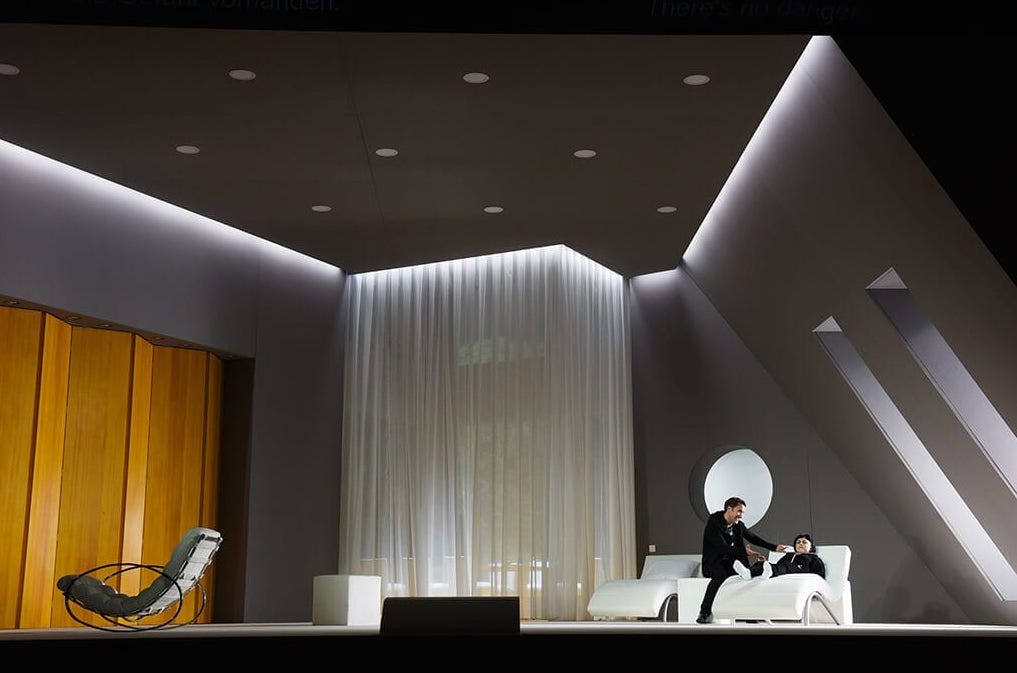 Garry Walker alla guida dell’orchestra del teatro concerta il canto declamato un po’ uniforme su cui si basa la vocalità, finché nel primo interludio, con la figura di Nutria, nella texture dissonante dell’orchestra si inserisce un elemento melodico tonale che accompagna la fluida leggerezza delle figure su ghiaccio disegnate dalla brava pattinatrice. Da quel momento l’orchestra diventa più seducente e orecchiabile fino a mimare la musica pop della festa in discoteca, il karaoke del patetico vecchietto e il momento di elegia del finale. Ogni quadro ha un suo proprio colore: al primo atto c’è grande spazio per gli archi, il secondo è più scuro con le voci del sassofono e dei legni bassi, nel terzo dominano gli ottoni.