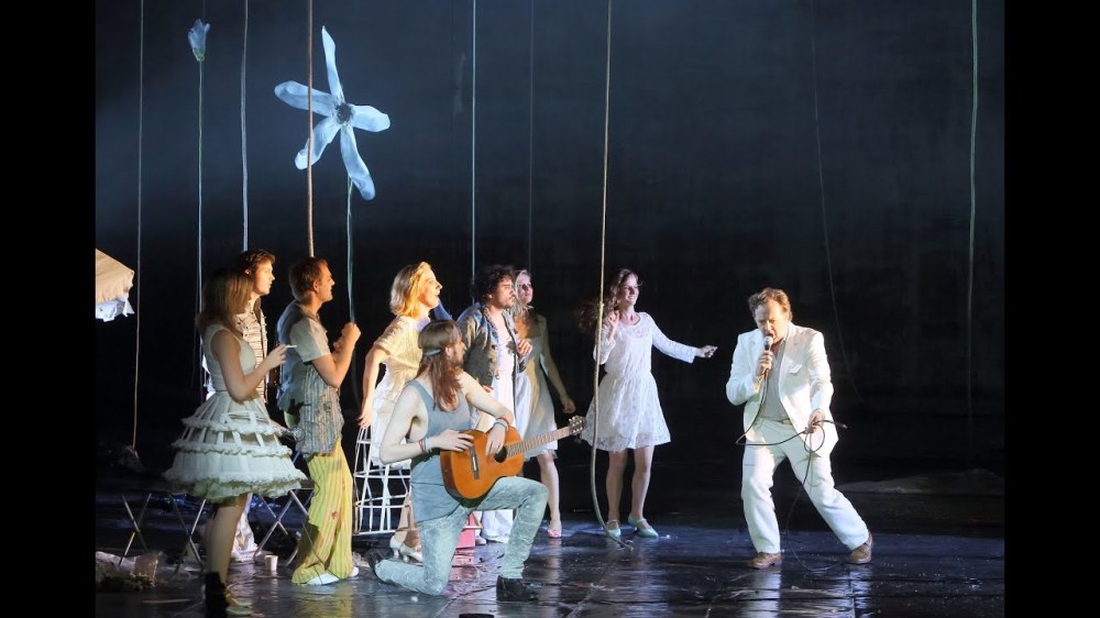 L’Orfeo della Bayerisches Staatsoper messo in scena da Bösch è dunque ambientato in un panorama post-apocalittico (le scene sono di Patrick Bannwart) dove una comunità di hippie un po’ trucidi si spostano con l’iconico furgone Volkswagen T2. Un cartello indica nel 27 luglio 1974 la data della vicenda, il matrimonio tra Orfeo ed Euridice e l’incongrua lira è un regalo di nozze degli amici. Orfeo è il meno variopinto del gruppo – ma sarebbe stato difficile immaginare Christian Gerhaher quale maturo “figlio dei fiori”. In questo desolato paesaggio lunare le margheritone che salgono da terra sembrano ventilatori dalle pale di latta i cui petali cadranno alla seconda morte di Euridice.