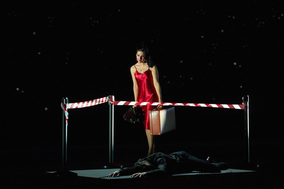 Scevro delle istanze rivoluzionarie che il personaggio aveva ai suoi tempi, e ancora per tutto il Romanticismo, il Don Giovanni di Livermore nasconde con la sua ipercineticità (salta sulla macchina, la guida da spericolato, non cammina, corre sempre) la sua ossessione per la morte. Ma anche per il sesso: il “banchetto” finale è nient’altro che un’orgia promiscua e le “portate” corpi di genere vario. La sessualità non è una prerogativa solo del Cavaliere però: anche Donna Anna cede agli invitati mascherati della festa sotto lo sguardo costernato di Don Ottavio, l’unico veramente immune dalla pulsione erotica. La stessa Donna Anna nella prima scena si era aggrappata a Don Giovanni, e non solo per non lasciarlo fuggire. Donna Elvira si era invece presentata in un provocante abito rosso e la sua figura moltiplicata da dodici ballerine: l’apice della femminilità e della passione cieca della donna per un marito che la tradisce allegramente.