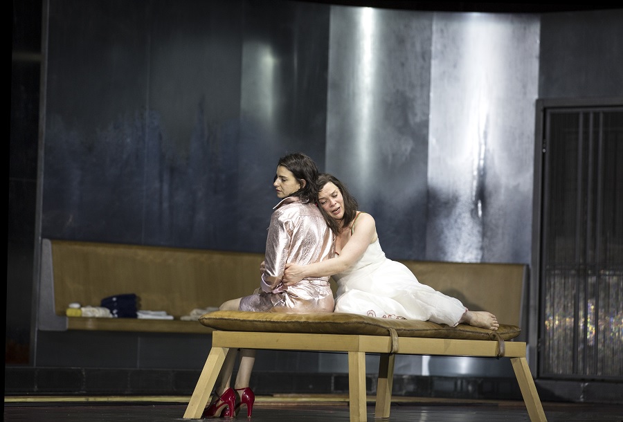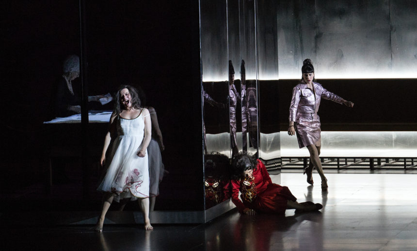 Salisburgo sfida la pandemia e inaugura con Elektra la sua 100ª stagione. Gli 890 spettatori ammessi nei 1400 posti disponibili all’ingresso della sala della Felsenreitschule trovano un sottofondo sonoro: un frinire di cicale. Sullo sterminato palcoscenico, scalza, le braccia ancora insanguinate, avanza Clitennestra e al microfono recita un monologo basato sulle sue battute nell’Orestea: «D’Agamennone non sono la moglie, alla donna del morto io assomiglio: sono l’antico vendicator d’Atreo che una vittima ha sacrificato a vendetta dei figli giovinetti. […] Per lui la morte non è stata indegna, non fu lui forse a farla entrare in casa? Oh, Ifigenia, mio fiore sbocciato, quanto pianto per te io ho versato! Suo padre non può vantarsi nell’Ade: ha pagato con la vita la morte che con la spada egli aveva dato. […] Non c’è bisogno del lamento dei congiunti di casa: ad accoglierlo in riva all’Acheronte, il fiume impetuoso dei dolori, ci sarà Ifigenia, la dolce figlia che, teneramente, con le braccia vorrà stringerlo al seno e poi baciarlo». E fin qui Eschilo (mentre il libretto di Hugo von Hofmannsthal si basa sull’Elettra di Sofocle), ma sul palcoscenico la bravissima Tanja Ariane Baumgartner conclude con un affranto «E di me che ne sarà?», sotto lo sguardo impietoso di Elettra seduta in un angolo. In questa lettura di Krzysztof Warlikowski, Clitennestra assurge a personaggio di statura pari a quella delle due sorelle, anche lei vittima della spietata ineluttabilità del destino.