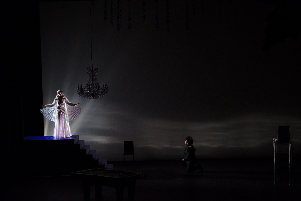 Con l’ingenua messa in scena di Louise Vignaud e le scenografie minimaliste di Irène Vignaud, la produzione è firmata dalla co[opéra]tive, un’équipe di 40 persone (14 cantanti, 19 strumentisti, regista e 6 aiuti) che porta in giro i suoi spettacoli con una smilza compagine orchestrale, l’Orchestre Les Siècles, su strumenti del 1830 e formata da 5 violini, una viola, un violoncello, 2 contrabbassi, un flauto, un oboe, un clarinetto, un fagotto, 2 corni, un trombone, percussioni e arpa. Diretta da Nicolas Simon vuole ricreare il suono di uno dei tanti teatrini in cui si mettevano in scena queste ingenue storie con cantanti magari non eccelsi. Il problema però è che a tratti pare di ascoltare una delle orchestrine di Piazza San Marco e per quanto riguarda i cantanti i ruoli sono tutt’altro che semplici e quello di George/Jules ha le stesse difficoltà di certi ruoli rossiniani. Volenteroso il cast formato da giovani promesse, ancora acerbe al momento. Sahy Ratia è appunto George/Jules che se la deve vedere con quella cavatina «Viens, gentille dame» appannaggio dei più eccelsi belcantisti, e bisogna dire che non ne esce troppo male. Caroline Jestaedt è un’Anna dalla voce esilissima che si teme si spezzi da un momento all’altro, Yannis François un Gaveston un po’ più solido, Sandrine Buendia Jenny, Fabien Hyon Dikson. Smilzo come l’orchestra il coro Le Cortège d’Orphée impegnato in molte pagine.