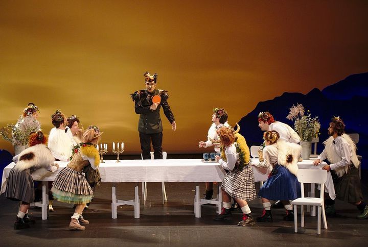 Quello che rimane nel ricordo di questo spettacolo sono i costumi di Cindy Lombardi: la pittoresca tribù degli scozzesi con corna e pellicce, gli abitanti del castello trasformati in insetti (coleottero Gaveston, ragno Marguerite) e la Dame Blanche/Anna candida civetta. Per tutti grande profusione di piume – anche per il direttore d’orchestra, come s’è detto. È mia convinzione che bisogna sempre diffidare di costumi troppo ricchi: spesso nascondono la mancanza di idee registiche. Come in questo caso.