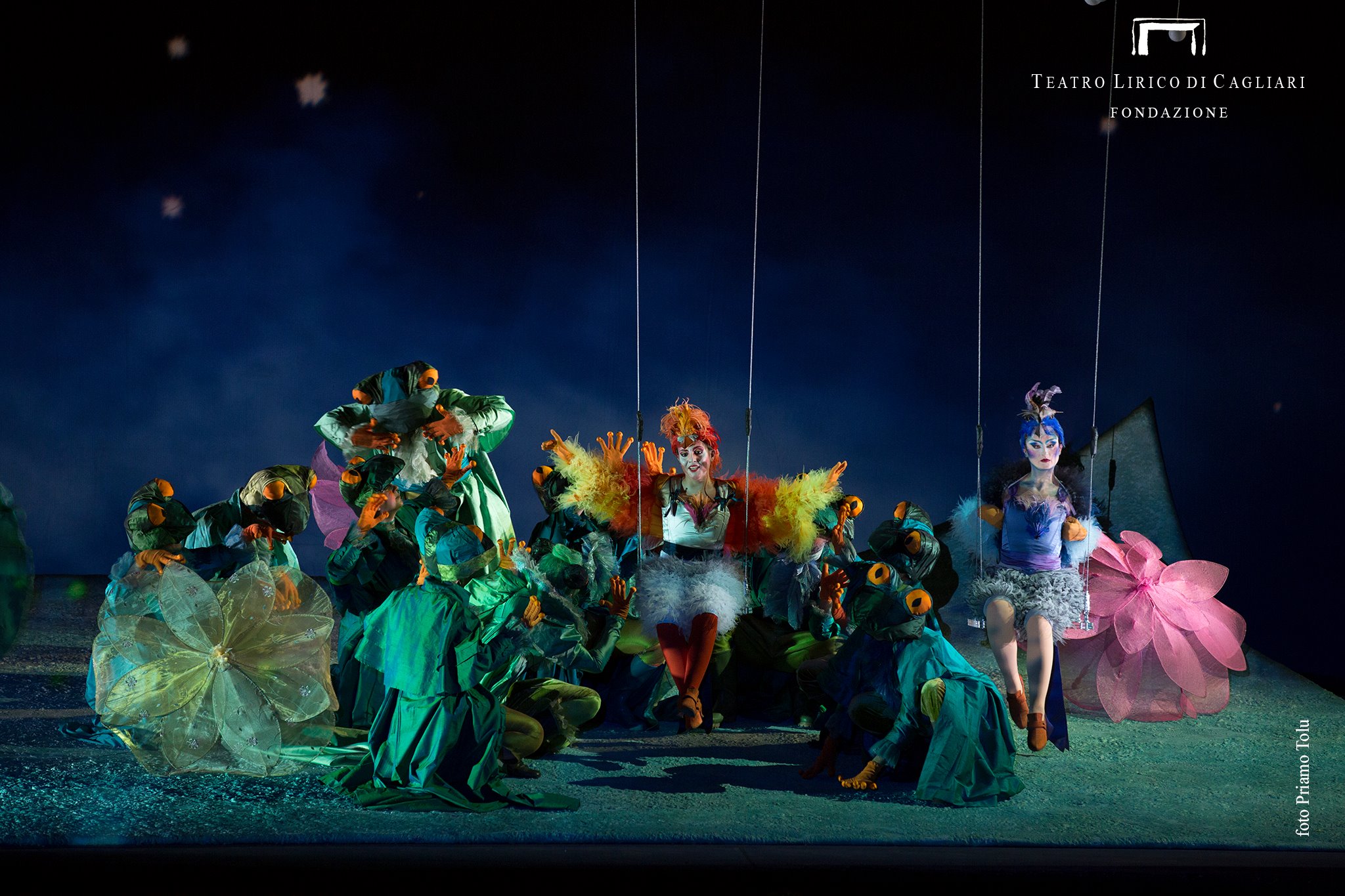 Ora al Lirico viene consacrata definitivamente la destinazione per i “teatri dei grandi” di questo lavoro con una produzione che si basa sulla versione del ’34. Tutto bene se il teatro sardo dimostrasse un po’ più di coraggio nelle messe in scene e anche questa di Leo Muscato non fa molto per convincerci della necessità di certe riesumazioni. Il tono fiabesco è dominante nella scenografia di Giada Abiendi e nei costumi di Vera Pierantoni Giua e un po’ leziosa la recitazione, ma il libretto è quello che è. Numerosi gli inserti danzati di Luigia Frattaroli mentre l’unico momento veramente godibile è il finale, ma qui avevano avuto ragione i curatori tanto criticati della produzione torinese del 1967 in cui il fox-trot fu sostituito dal twist, il ballo allora in voga: per mantenere l’ironica trovata del risveglio dopo il passaggio dei secoli, qui ci voleva qualcosa di più attuale.
