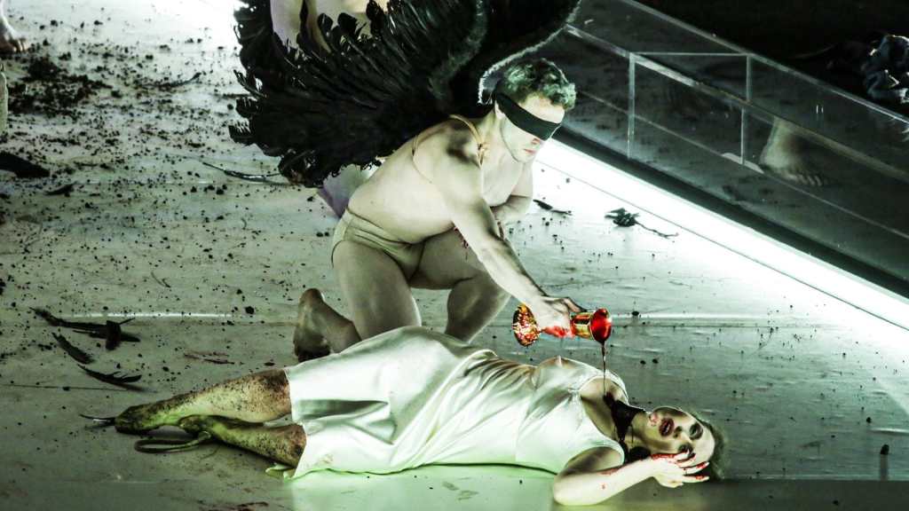 Prima ancora che Salome baci la bocca del cadavere del Battista, sentiamo di una Luna che «sembra una donna morta», c’è chi scivola sul sangue di un cadavere, di morti risuscitati… e l’ultima battuta è nientemeno che «Man töte dieses Weib!» (ammazzate ‘sta donna!). E non dimentichiamo il richiamo agli angeli della morte, puntualmente portati in scena con le loro ali nere da Damiano Michieletto sul palcoscenico del Teatro alla Scala dove finalmente si può vedere lo spettacolo annullato un anno fa per le note vicende pandemiche, anche se solo in streaming e a teatro chiuso al pubblico.