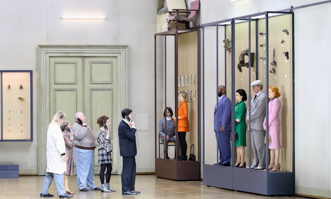 Sotto la guida del direttore finlandese la Bayerische Staatsorchester supera a pieni voti la sfida e i solisti si confermano le eccellenze che conoscevamo. Christian Gerhaher, che debutta nella parte creata per Dietrich Fischer-Dieskau nel ’78, domina in assoluto, delineando la parabola del personaggio con grande intensità. Non sono lontani gli accenti del suo Wozzeck qui a Monaco nella sua lucida discesa nella follia: il canto diventa con naturalezza un quasi parlato e viceversa, a partire dall’ironico «To be or not to be» che Gerhaher profferisce a bassa voce appena arrivato in scena e che strappa una risatina a più di uno spettatore. Tutta la sua performance è giocata su un magistrale equilibrio tra i toni della tragedia e quelli di un nero umorismo, tra tensione e rilassatezza nella voce, fino al «Weint! Weint!» dello struggente finale. Non è da meno Andrew Watts, già presente nella produzione amburghese, che naviga abilmente tra le vocalità, tenorile e sopranista, per costruire il personaggio di Edgar. Brenden Gunnell fornisce empatica umanità al personaggio di Kent mentre Georg Nigl delinea con efficacia Gloster, l’altro padre cieco nei confronti dei figli e a sua volta accecato. Differenti le vocalità delle tre figlie di Lear: dolorosamente lirica la Cordelia di Hanna-Elisabeth Müller; Aušrinė Stundytė presta invece la sua tecnica magistrale per esprimere la gelida crudeltà di Regan; i mezzi vocali un po’ usurati di Angela Denoke sono al servizio di una Goneril perfidamente calcolatrice. Matthias Klink si contorce espressionisticamente come Edmund e nel breve intervento del re di Francia si spreca il talento di un Edwin Crossley-Mercer, irriconoscibile sotto il parrucchino. Spesso affacendato in scena è Dean Power, il servo qui inserviente del museo. I due inetti mariti delle figlie sono affidati a Ivan Ludlow (Albany) e Jamez McCorkle (Cornwall). Il personaggio del folle che commenta con distacco ironico gli avvenimenti ha la voce e la figura dell’attore Graham Valentine.