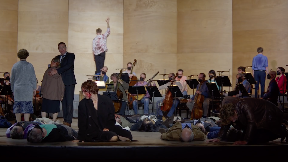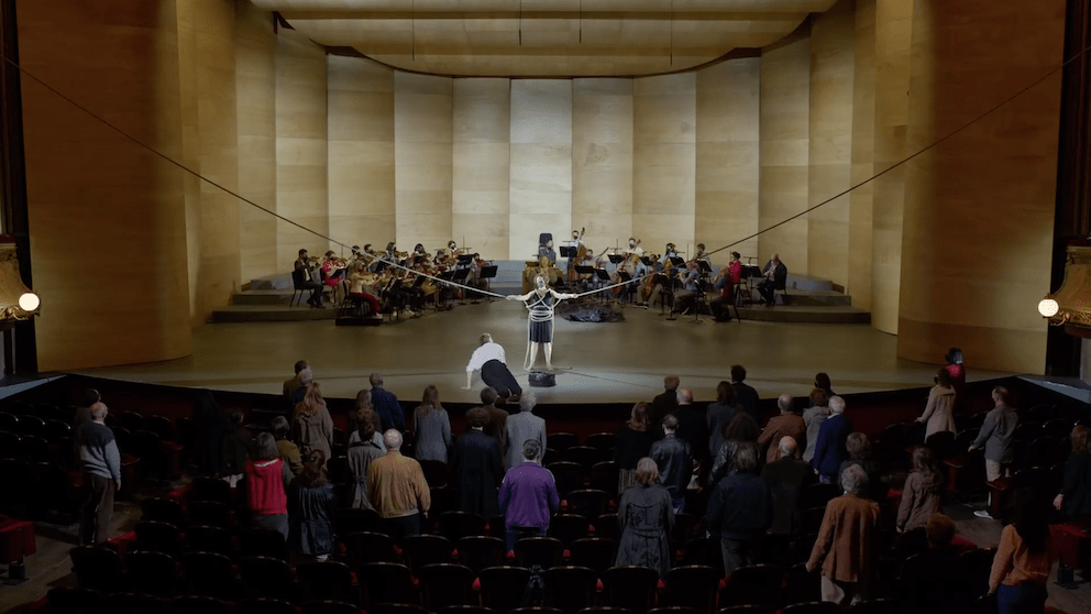 Ripreso da Lucía Astigarraga, lo spettacolo si svolge nel teatro Châtelet vuoto per l’emergenza sanitaria da Covid-19. I coristi si alzano dai loro posti in platea e salgono sul palcoscenico dove è già schierata l’orchestra. L’“azione” avverrà soprattutto al proscenio.