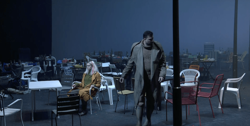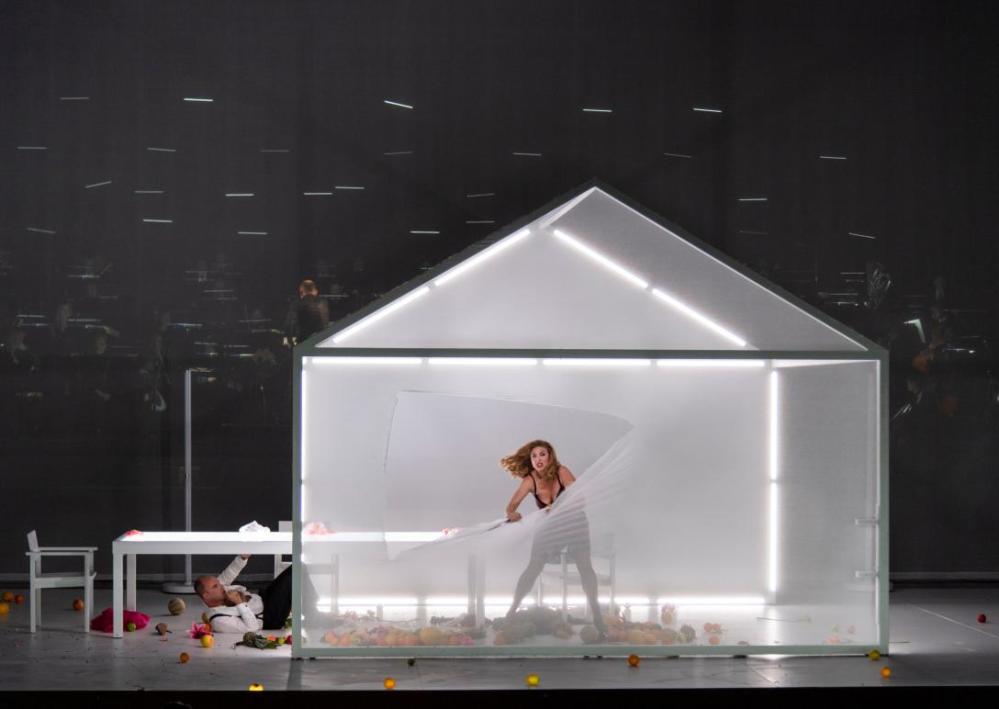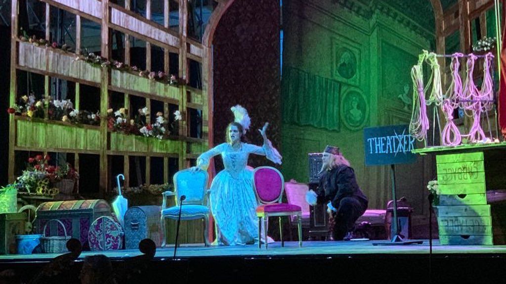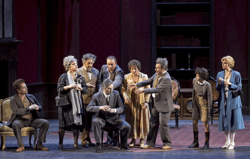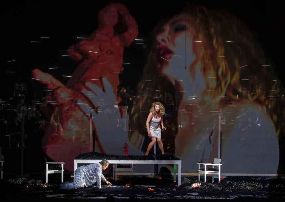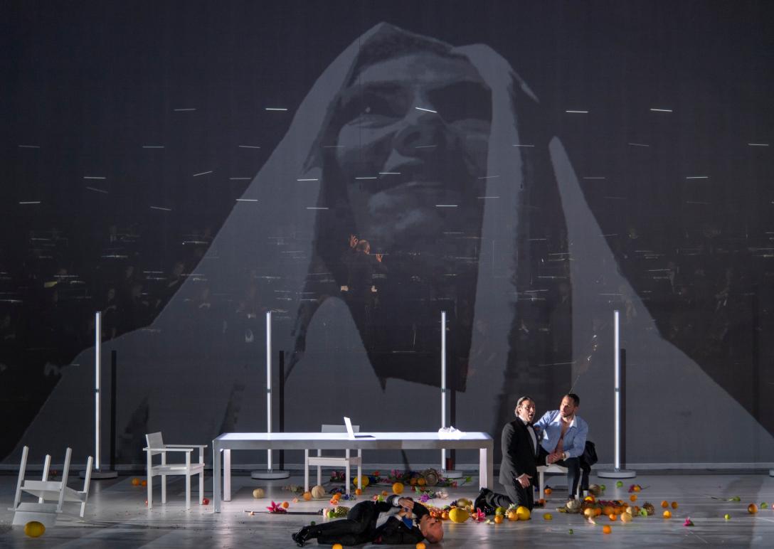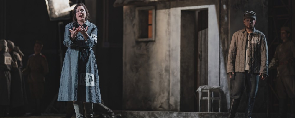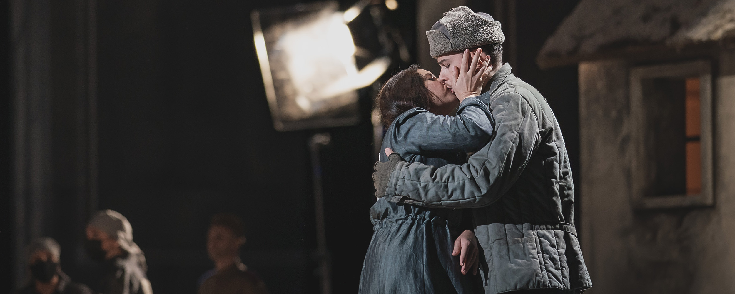 Visivamente l’allestimento di Roberto Andò parte bene: la scena altoborghese e realistica all’apertura di sipario di Gianni Carluccio si trasforma in uno studio cinematografico dove si girano le pellicole del realismo socialista di epoca staliniana: un finto operatore e un finto microfonista intervengono a tratti e talora gli interpreti si cambiano costume o aspettano la loro battuta ai lati della scena. Su due schermi che scendono dall’alto vengono proiettate le immagini degli attori che interpretano la vicenda nel mezzo filmico, o spezzoni di cinegiornali d’epoca – compresa la faccia di Stalin stesso che appare alle parole «Cristo è risorto» nella scena della Pasqua del terzo atto. Ma l’idea non ha un’effettiva necessità e la mancanza di regia attoriale trasforma la performance in una esecuzione tradizionale con i cantanti al proscenio rivolti al pubblico e con i soliti gesti. Ci voleva probabilmente un regista come Livermore per sfruttare la lettura cinematografica con maggior convinzione. Peccato, così la riproposta di Siberia è stata un’occasione riuscita a metà.