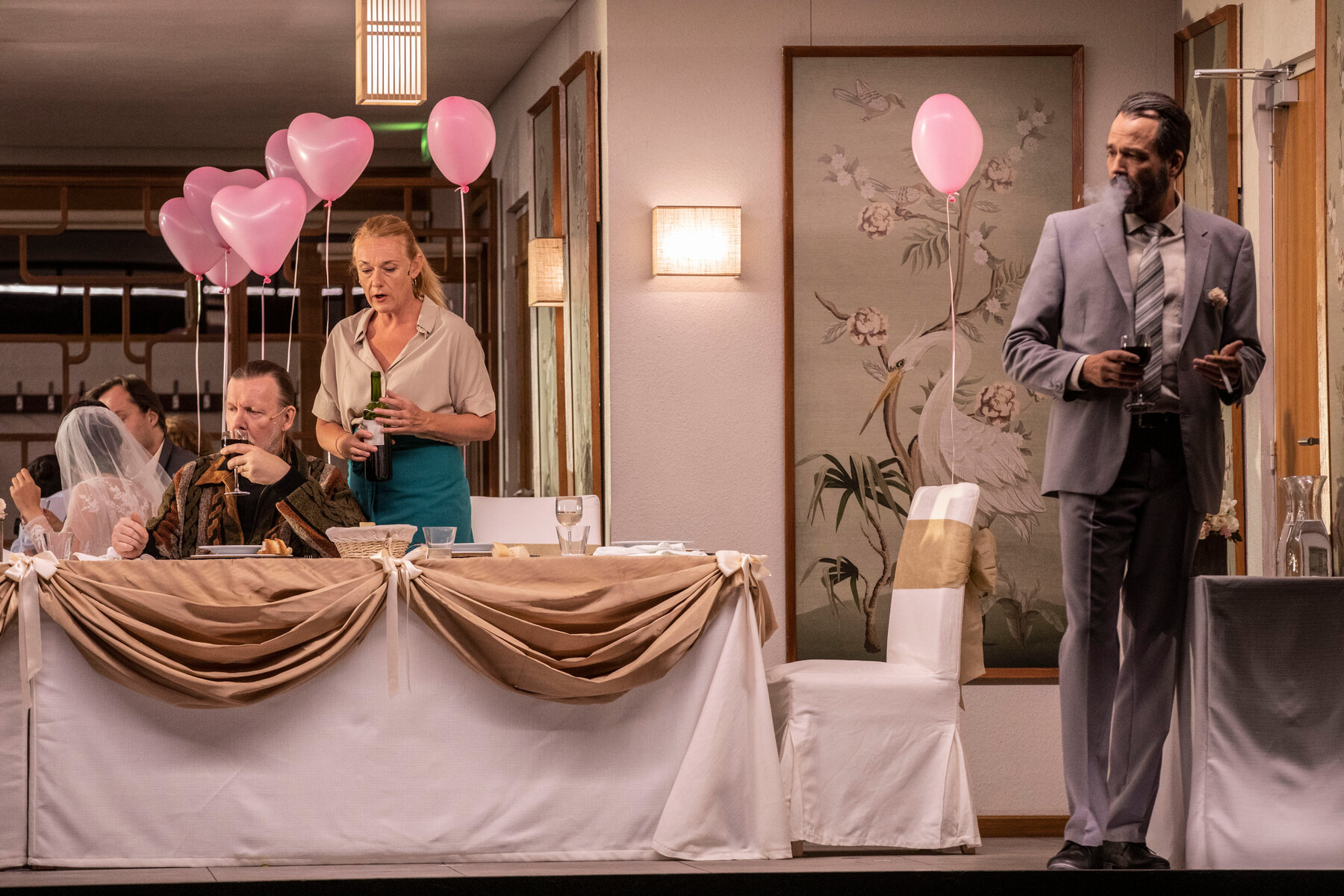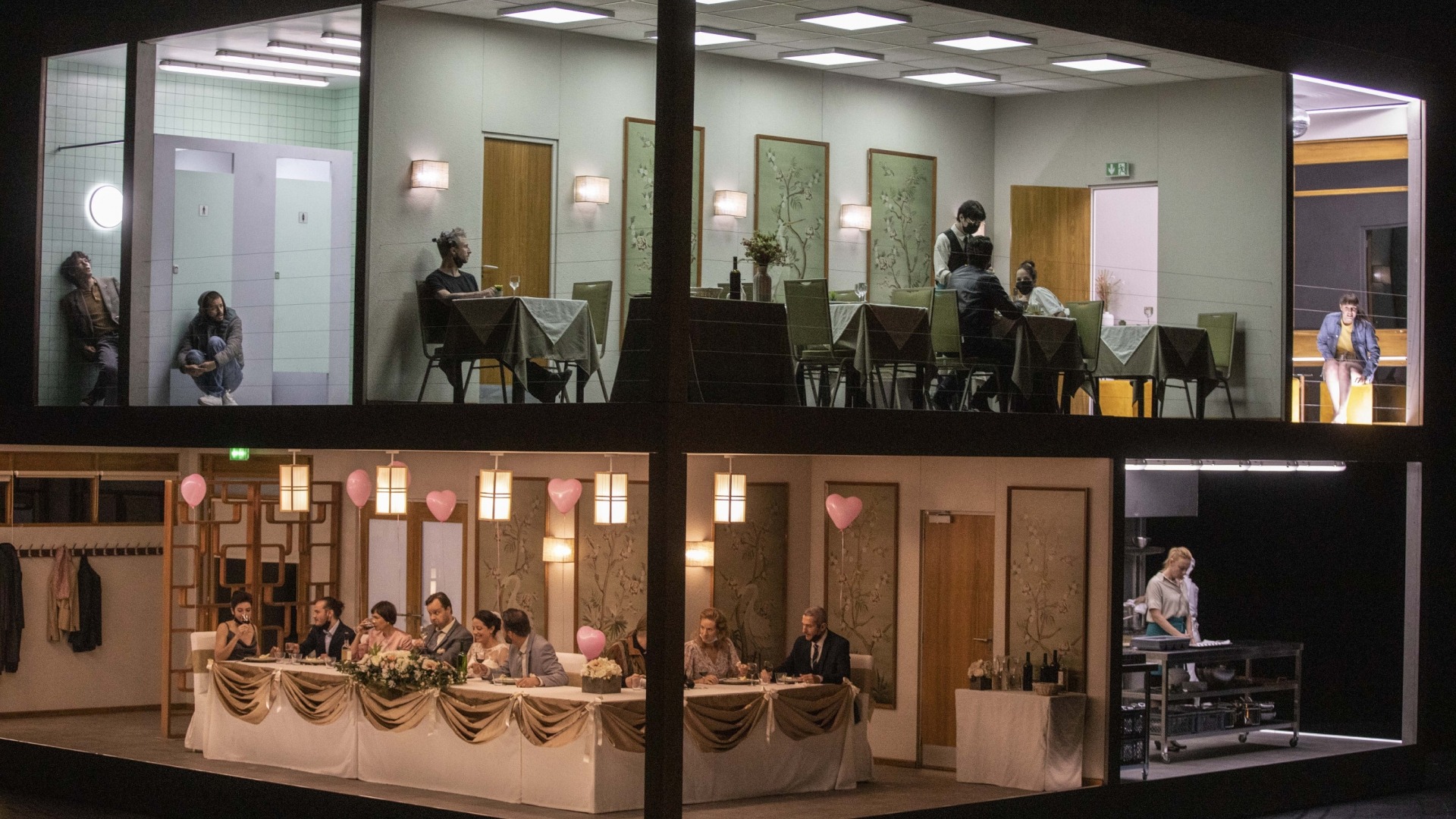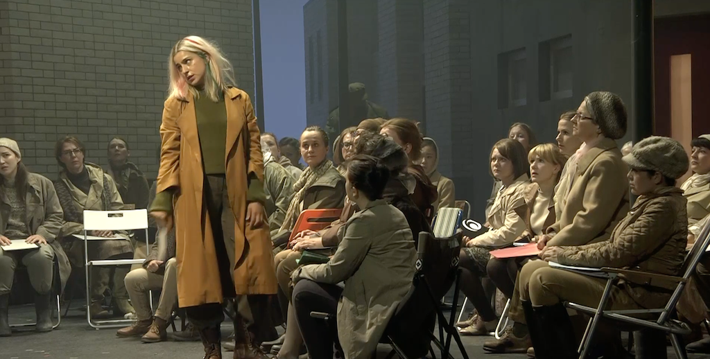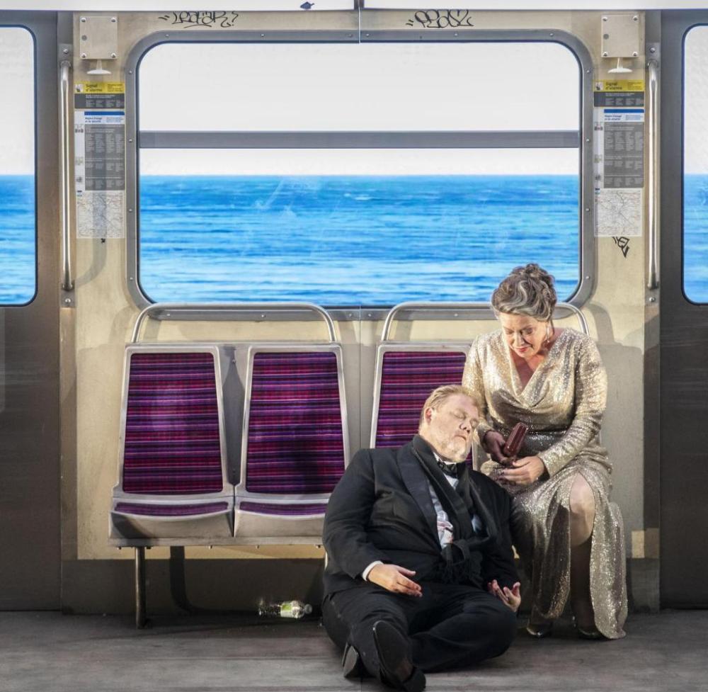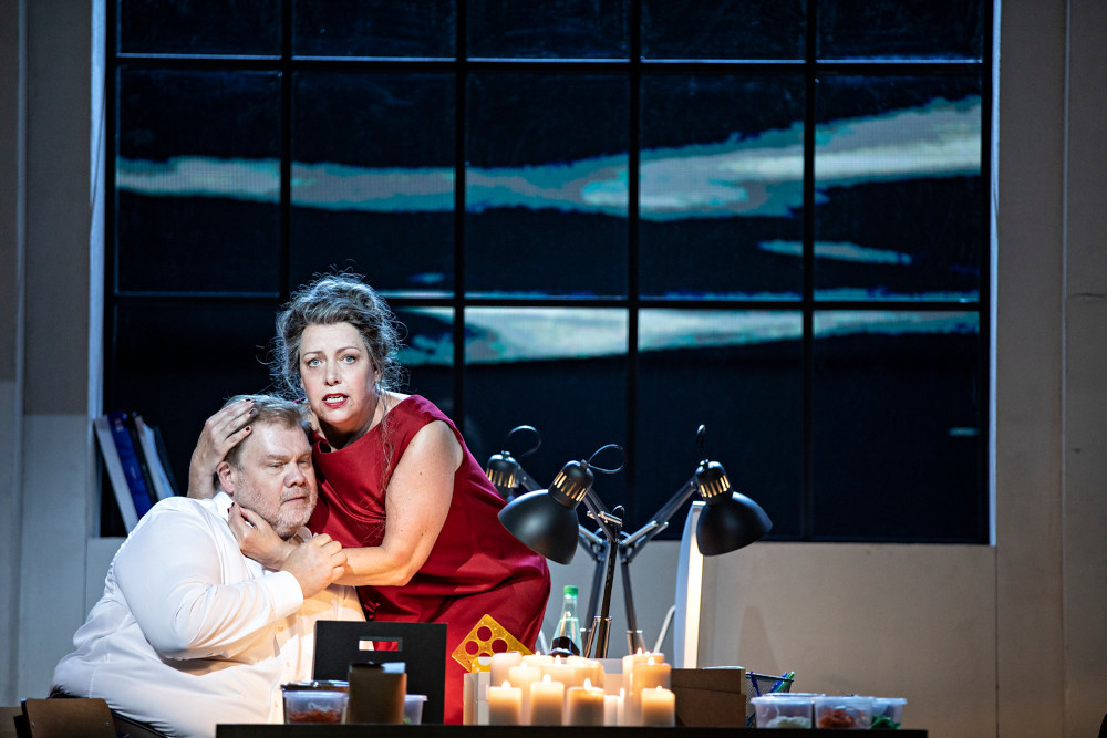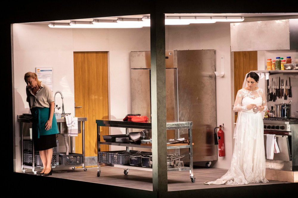 Visivamente l’allestimento di Roberto Andò parte bene: la scena altoborghese e realistica all’apertura di sipario di Gianni Carluccio si trasforma in uno studio cinematografico dove si girano le pellicole del realismo socialista di epoca staliniana: un finto operatore e un finto microfonista intervengono a tratti e talora gli interpreti si cambiano costume o aspettano la loro battuta ai lati della scena. Su due schermi che scendono dall’alto vengono proiettate le immagini degli attori che interpretano la vicenda nel mezzo filmico, o spezzoni di cinegiornali d’epoca – compresa la faccia di Stalin stesso che appare alle parole «Cristo è risorto» nella scena della Pasqua del terzo atto. Ma l’idea non ha un’effettiva necessità e la mancanza di regia attoriale trasforma la performance in una esecuzione tradizionale con i cantanti al proscenio rivolti al pubblico e con i soliti gesti. Ci voleva probabilmente un regista come Livermore per sfruttare la lettura cinematografica con maggior convinzione. Peccato, così la riproposta di Siberia è stata un’occasione riuscita a metà.