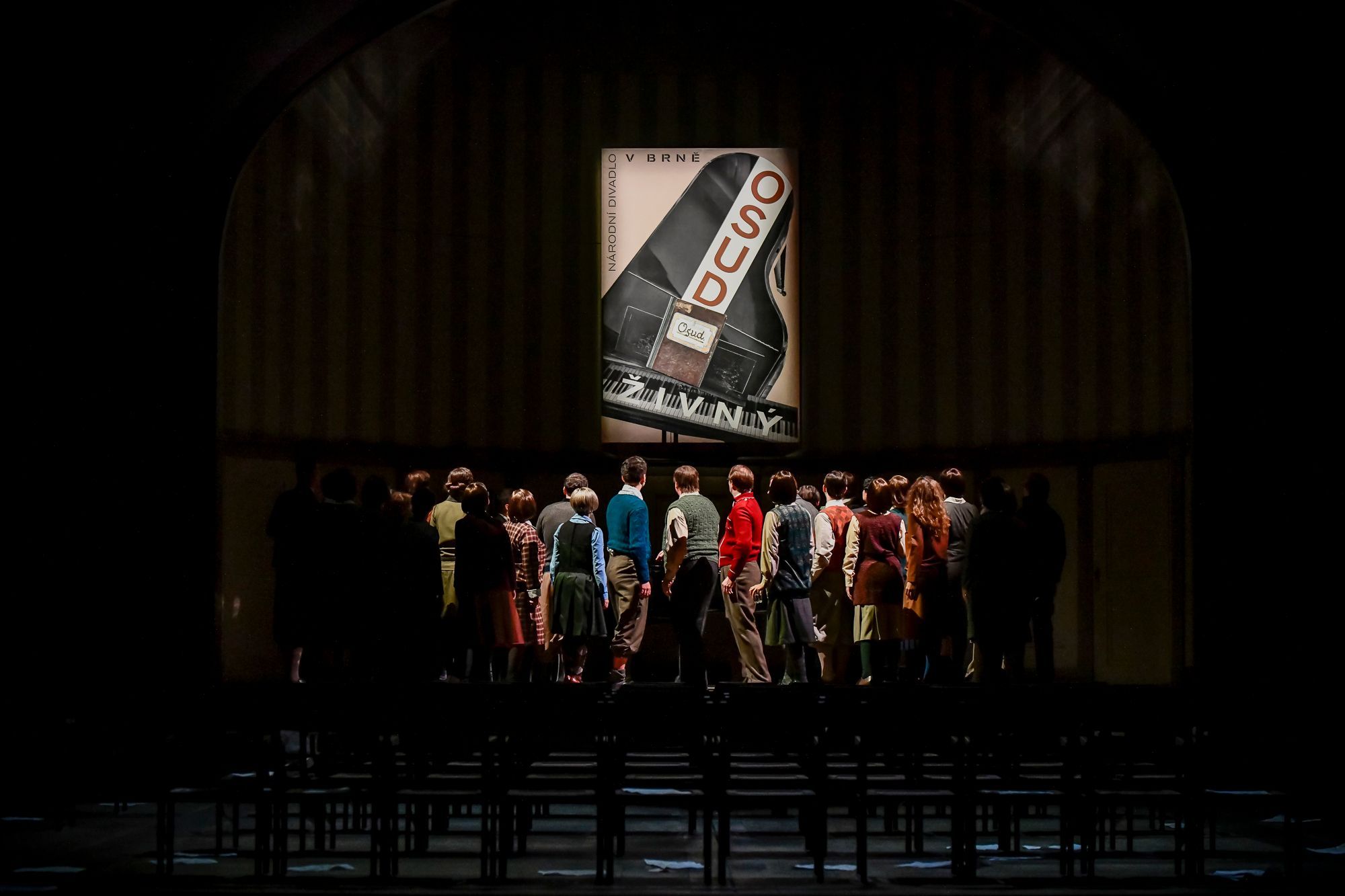 Entrambi stranieri i due interpreti di Živný: il tenore inglese Philip Sheffield per il compositore da vecchio, l’italiano Enrico Casari per il compositore da giovane. Più efficace attorialmente che vocalmente il primo, esile nel registro acuto; più convincente il secondo, controllato seppure espressivo. Intensa la parte di Míla, sensibilmente interpretata da Alžběta Poláčková mentre breve ma ben caratterizzata è la madre folle di Natascha Petrinsky. Nel folto gruppo di caratteri secondari si fa notare per il bel timbro di baritono Lukáš Bařák nella doppia parte di Konečný e di Verva. Marko Ivanović a capo dell’orchestra dà una lettura molto asciutta che esalta la modernità della partitura, un po’ meno accentata è la drammaticità della musica espressa dai forti contrasti sonori, qui attenuati.