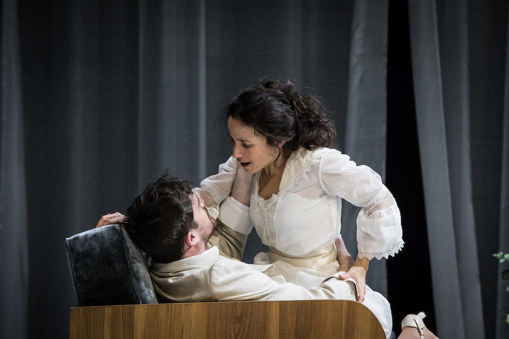 Possiamo verificare tutto ciò con lo spettacolo allestito dal Teatro Regio di Torino e proveniente dalla Kammeroper des Theaters an der Wien, una piccola sala di trecento posti. Previsto per la sede più adatta del Piccolo Regio, l’ex commissaria straordinaria ha voluto invece che fosse messo in scena nella sala principale così che questo gioiellino settecentesco deve vedersela con le inusitate dimensioni del teatro grande e lo scenografo Christof Cremer deve ridurre a circa un terzo della larghezza del palcoscenico il suo minuscolo ambiente. Ambiente genialmente ideato che permette i vari cambi di scena tramite una struttura rotante a puzzle messa in moto da un danzatore la cui presenza non sembra ulteriormente necessaria. L’iperdecorativismo della scena si riflette anche nei costumi di taglio contemporaneo disegnati dallo stesso Cremer mentre la regia di Jean Renshaw gestisce con fluidità l’andirivieni dei personaggi ma non può far molto con la loro psicologia schematizzata, anche se alcuni tocchi arguti insaporiscono la recitazione.