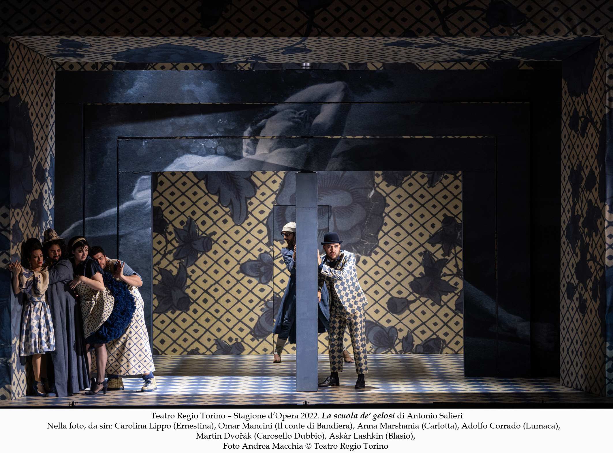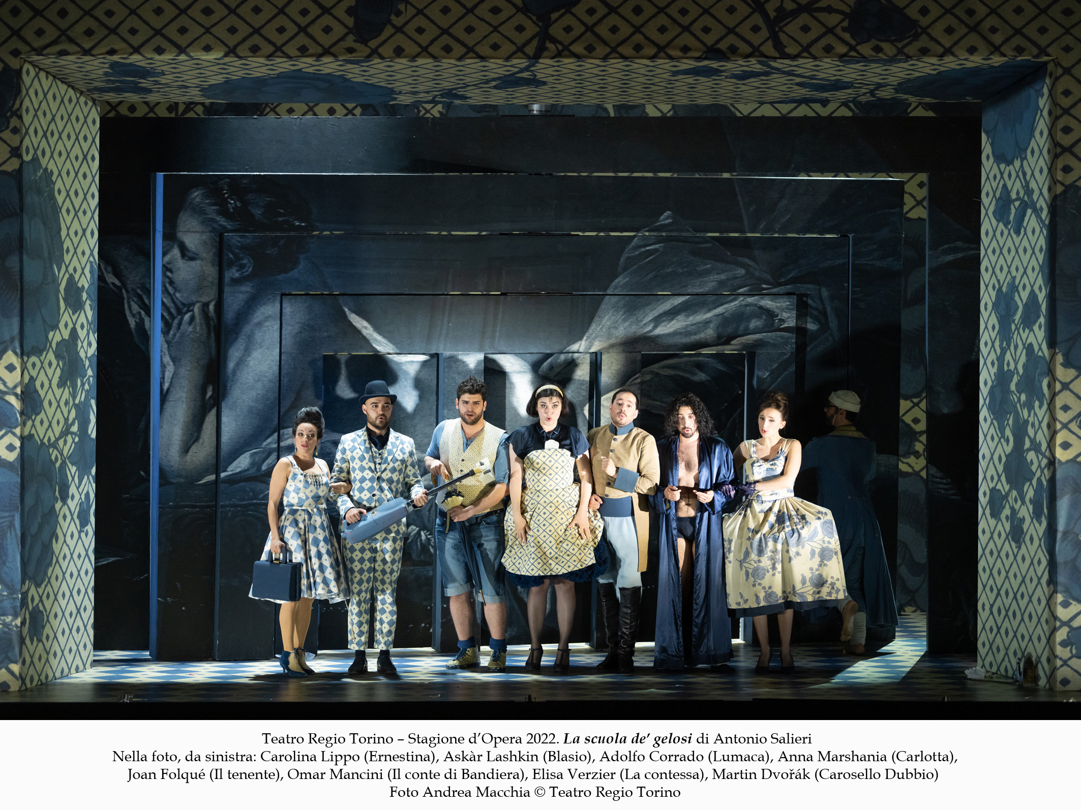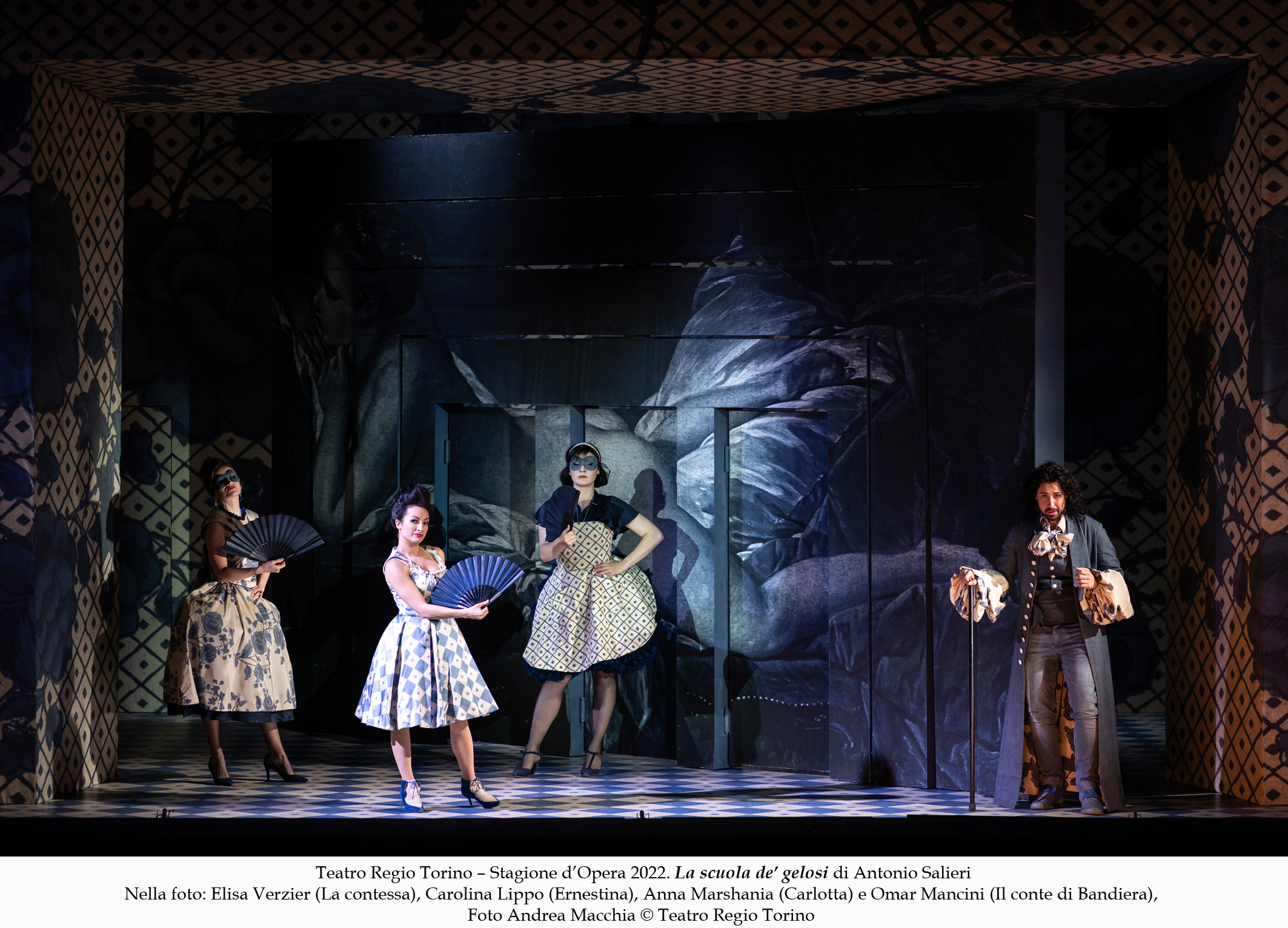 Pochi mesi dopo aver inaugurato il nuovo Teatro alla Scala con Europa riconosciuta, il 28 dicembre 1778 al Teatro San Moisè di Venezia Antonio Salieri presenta la sua quindicesima opera: ambientata in Milano, è La scuola de’ gelosi, dramma giocoso su libretto di Caterino Mazzolà. Il cast è formato da interpreti che ritroveremo nelle future opere di Mozart – Nancy Storace (qui Contessa) sarà la prima Susanna delle Nozze, Francesco Benucci (Blasio) il primo Figaro, Francesco Bassani (Lumaca) il futuro Don Alfonso di Così, Michael O’Kelly (Conte) il primo Don Basilio – o che avevano già fatto parte di opere precedenti – Caterina Cavalieri (Ernestina) era stata Konstanze e Theresia Teyber (Carlotta) Blonde nel Singspiel Die Entführung aus dem Serail.