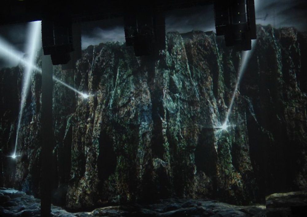 Azzurro (Michael) e rosso (Luzifer) sono i colori che connotano le due fazioni in lotta negli spazi della Philharmonie di Parigi in gran parte occupati dalla mastodontica compagine di cori, fanfare e orchestra. La corsa degli anni vede quattro ballerini muoversi a velocità diverse: veloce quello degli anni, più lento quello dei decenni e così via. Con i loro passi lasciano una traccia di sangue che forma le cifre del 2020. La corsa si conclude a ritmo frenetico e con il premio ai quattro corridori. La complesssa scenografia del diversissimo atto secondo è risolta con la videografica di Nieto: una muraglia rocciosa imprendibile, raggi laser, aerei che sorvolano la sala proiettati sul soffitto e sui muri per poi schiantarsi contro la muraglia. Carri armati, cannoni, aerei scorrono come giocattoli su un nastro trasportatore per cadere su un altro nastro che si muove in senso contrario e alla fine sono rastrellati come fiche da un croupier di vetro. La musica qui ha una grande fisicità, e non solo per il volume sonoro: gli ottoni sono gli strumenti di elezione e sempre presenti con effetti quasi organici – singhiozzi, sospiri, respiri. Non tutto è preso sul serio dal regista Damien Bigourdan in questo spazio sonoro, fortunatamente, e la grandiosità della musica, a momenti apocalittica, contrasta talora amabilmente con le ironiche gag messe in scena. Surreale ma a suo modo molto poetico è il duetto tra la Madonna/Eva e il suonatore di flicorno alle sue spalle. Il finale psichedelico con Sarah Kim al sintetizzatore ricorda il viaggio di Dave in 2001: A Space Odissey, il film di kubrick uscito pochi anni prima della composizione di Dienstag. Estraneo a una tradizionale forma narrativa, il lavoro di Stockhausen si sviluppa secondo una ritualità di suoni, immagini surreali e movimenti in uno spettacolo grandioso che ha ben poco dell’opera lirica che conosciamo, ma che è altrettanto coinvolgente, quasi ipnotizzante.