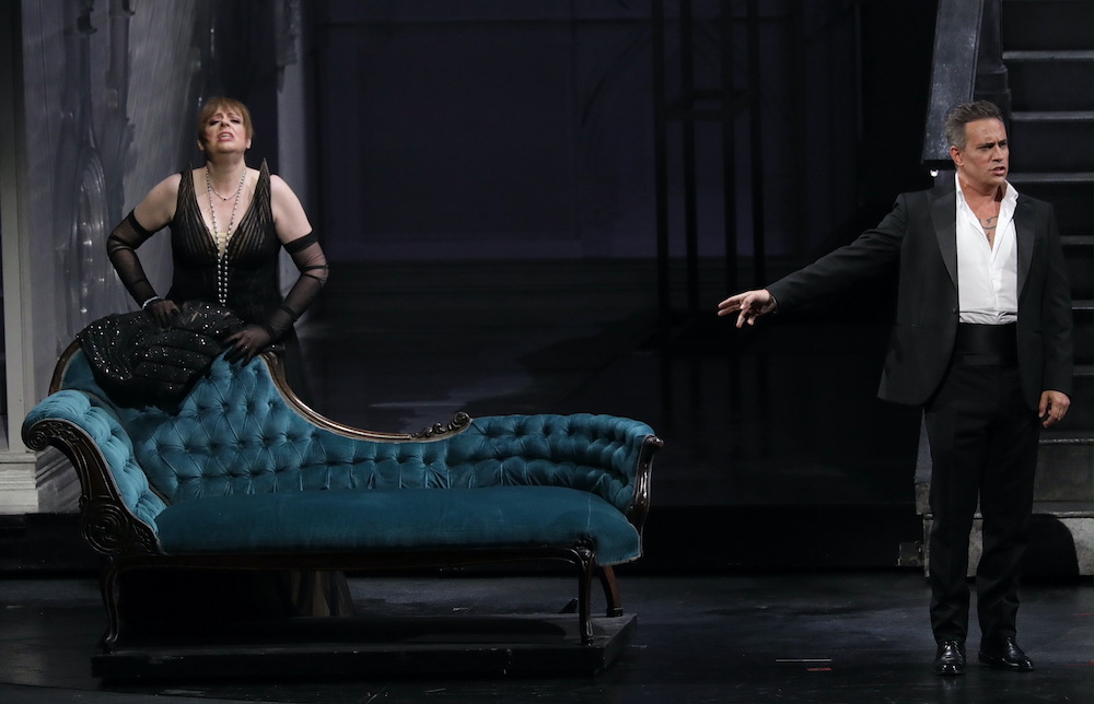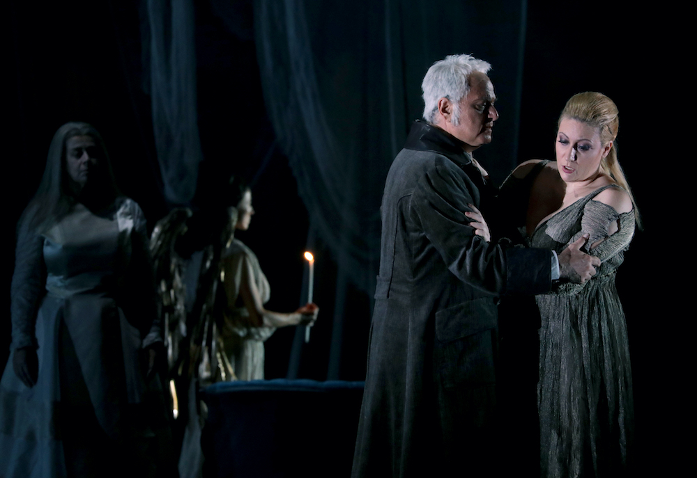 Il regista torinese ricrea una Venezia lugubre e onirica, tra la Venise Céleste di Mœbius e il Casanova di Fellini, con i ponti, le scalette, i palazzi trasparenti disegnati da Giò Forma – anche se fin troppo realistico è invece il brigantino del secondo atto. La scena è infestata dai crudeli Pulcinelli del Tiepolo di Ca’ Rezzonico qui scherani del capo dell’inquisizione, dagli angeli della morte e dai genii del male calati dall’alto. Lugubri gondole, capitelli sospesi, bifore e colonnine in garza connotano la città lagunare. L’impianto ipertecnologico a cui ci aveva abituato Livermore è limitato alle proiezioni della D-Wok, qui poco più che decorative, con i profili delle chiese nella nebbia che sale dal mare, i soffitti a cassettone di palazzi grandiosi e una figura femminile che fluttua nell’acqua e che vuole forse accennare alla Cieca affogata nel canale. Meno curata del solito è anche apparsa la cura attoriale dei cantanti. Saioa Hernández è ritornata nella parte del titolo con cui aveva debuttato nei teatri emiliani quattro anni fa. Volume enorme, grande temperamento e tecnica impeccabile si alleano a un timbro particolarissimo che in questo repertorio è manna dal cielo per delineare il carattere del personaggio, tanto che il pubblico l’ha compensata con un diluvio di applausi al termine di «Suicidio!» e nei saluti finali. Anna Maria Chiuri, che in quella produzione era Laura Adorno, qui veste i panni della Cieca con efficace vocalità e buona presenza scenica, mentre Laura qui è Daniela Barcellona, interprete belcantista che in questo repertorio truculento ha fornito la bellezza del suono e la cura del fraseggio che le riconosciamo. Straordinariamente inciso è stato l’Alvise Badoèro di Erwin Schrott, che ha rinunciato a ogni gigioneria per concentrarsi sulla qualità della sua voce rendendo memorabile la sua scena e aria all’inizio del terzo atto. Altrettanto perfido ma non caricaturale il Barnaba di Roberto Frontali, risolto con grande mestiere dal baritono romano. L’indisposto Fabio Sartori è stato sostituito all’ultimo momento da Stefano La Colla le cui incertezze di intonazione, giustificate alla prima, sono continuate anche nella recita dell’11, ma il pubblico ha reagito pavlovianamente al suo acuto finale “col rinforzo” di «Cielo e mar» applaudendo una modesta prestazione caratterizzata da un volume ragguardevole ma pochezza di colori e di intenzioni. Fabrizio Beggi (Zuàne) e Francesco Pittari (Isèpo, Boito ama mettere gli accenti anche là dove non servono…) sono tra gli altri convincenti comprimari. Come sempre ottimo il coro istruito da Alberto Melazzi. Nella Danza delle Ore, prosaicamente coreografata da Frédéric Olivieri, si sono distinti gli allievi della scuola di ballo dell’Accademia del teatro.