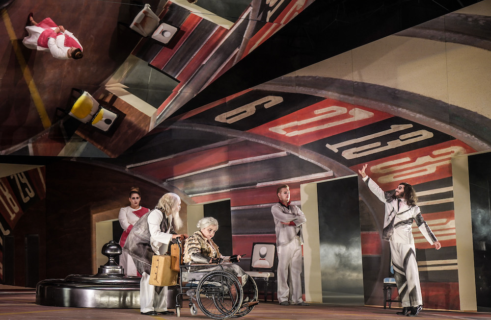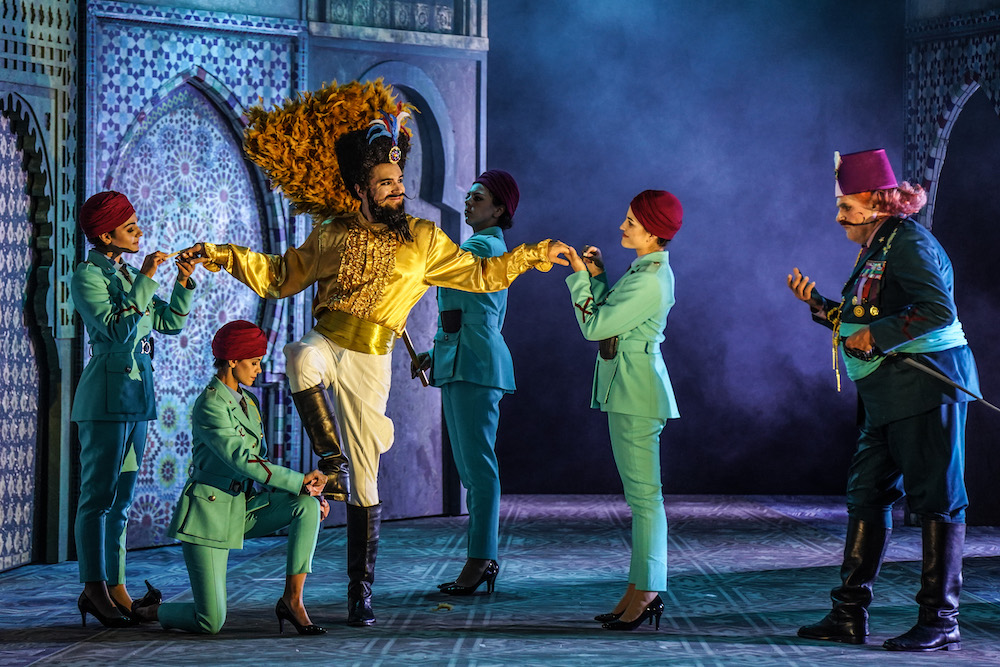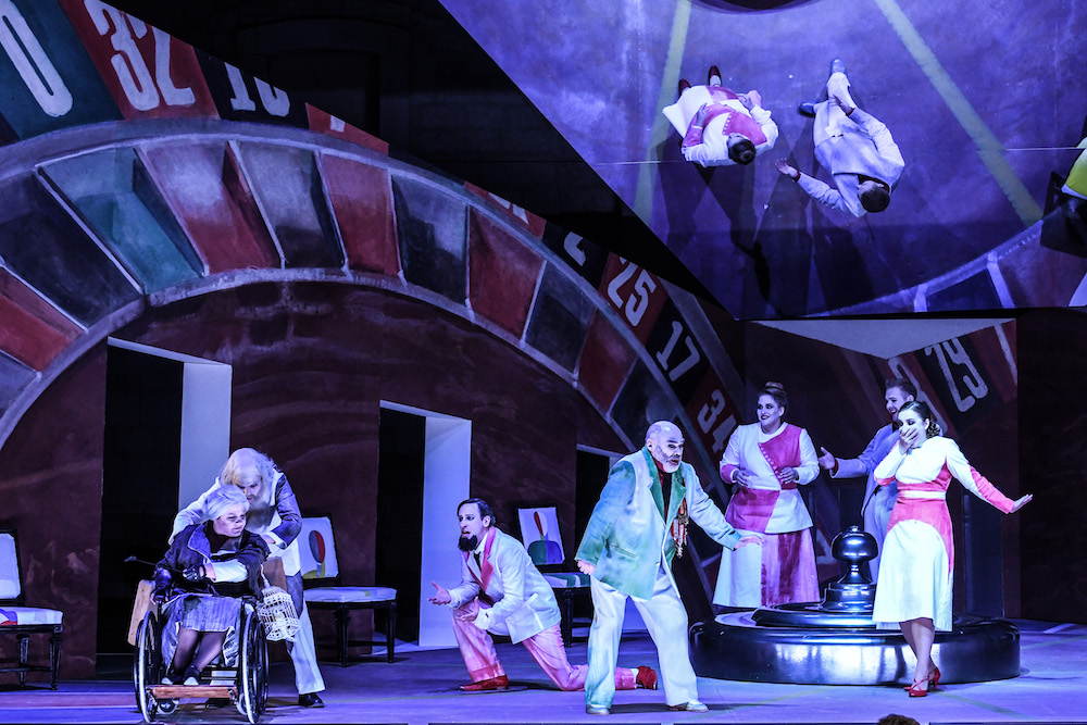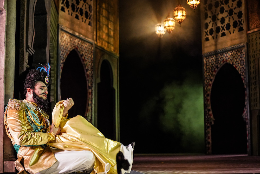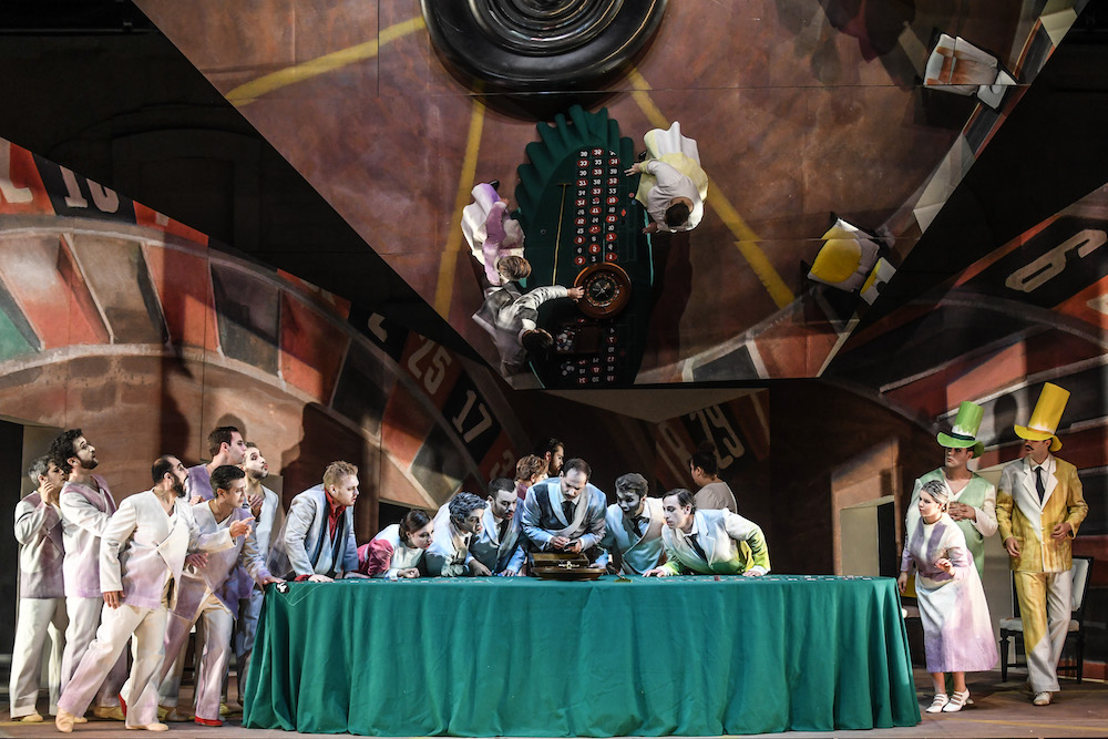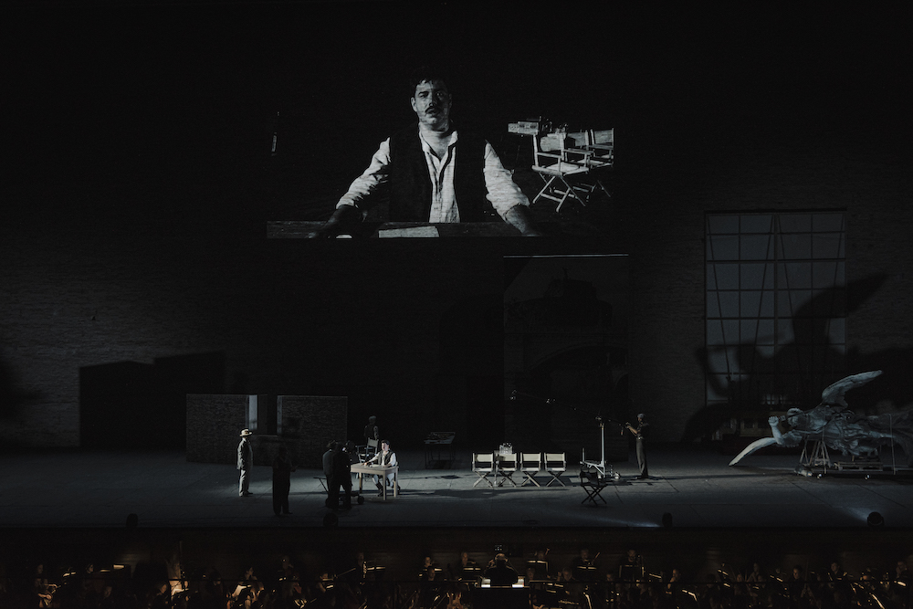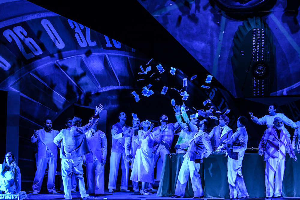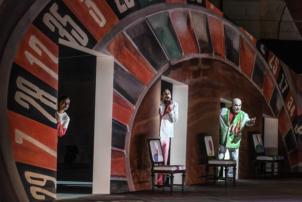 Sufficiente la performance di David Ferri Durà (Carletto), mentre di Vladimir Sazdovski (pittore Roberto alias Conte de’ Ridolfi) si nota la improbabile pronuncia del francese quando parla francese e dell’italiano quando parla italiano. Di Francesco Auriemma viene la voglia di ascoltare la profonda voce di basso in un altro ruolo meno caricaturale di questo di Succhiello Scorticone. L’attore Mario Brancaccio impersona l’irrequieto direttore di teatro. Tutti sembrano comunque divertirsi. Anche il coro, qui nei costumi di Laura Viglione che alludono alla parodia di Aida a casa di Donna Peppa con Policinella finto Aida in scena al San Carlino e a cui allude Don Mario Luzio. Chissà se il Maestro Verdi l’ha mai vista…