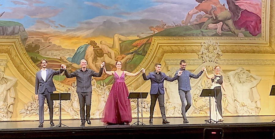 Più lirica, ma non meno ricca di agilità vocali, la parte di Erissena, a suo tempo creata per Giuseppe Appiani, allievo di Porpora e giovanissimo contraltista allora debuttante in quest’opera. Con «Di rendermi la calma | prometti o speme infida» Jake Arditti delinea con efficacia il personaggio sfoggiando il suo particolare timbro vocale e una sicura tecnica. Quinto controtenore in scena è Nicholas Tamagna (Timagene), convincente anche se travestito da vecchio gibboso e libidinoso. Non ci si annoia certo con queste cinque vocalità in cui ognuno apporta la sua differente personalità. L’unica voce bassa è quella tenorile di Stefan Sbonnik (Gandarte) che non inizia al meglio, ma poi si siprende fino all’impeccabile resa di «Se viver non poss’io | lungi da te mio bene» che conquista il pubblico. Il tutto è reso possibile dalla direzione precisa e brillante di Martyna Pastuszka alla guida della {OH!} Orkiestra Historyczna, compagine che si dedica con entusiasmo e competenza al repertorio sei-settecentesco.