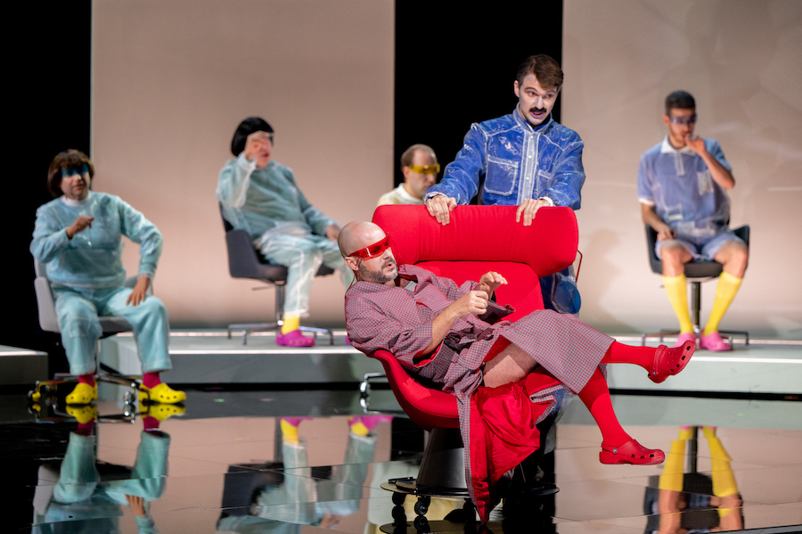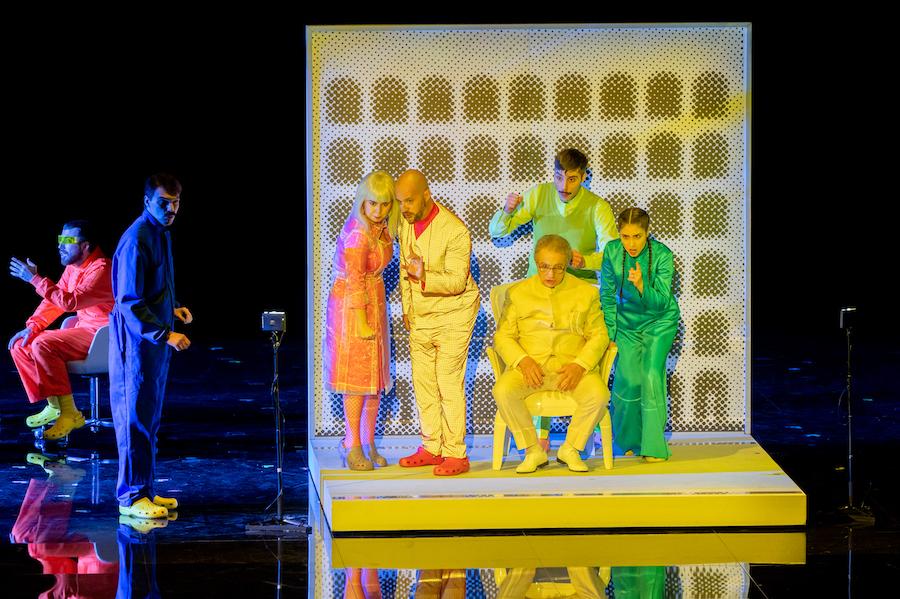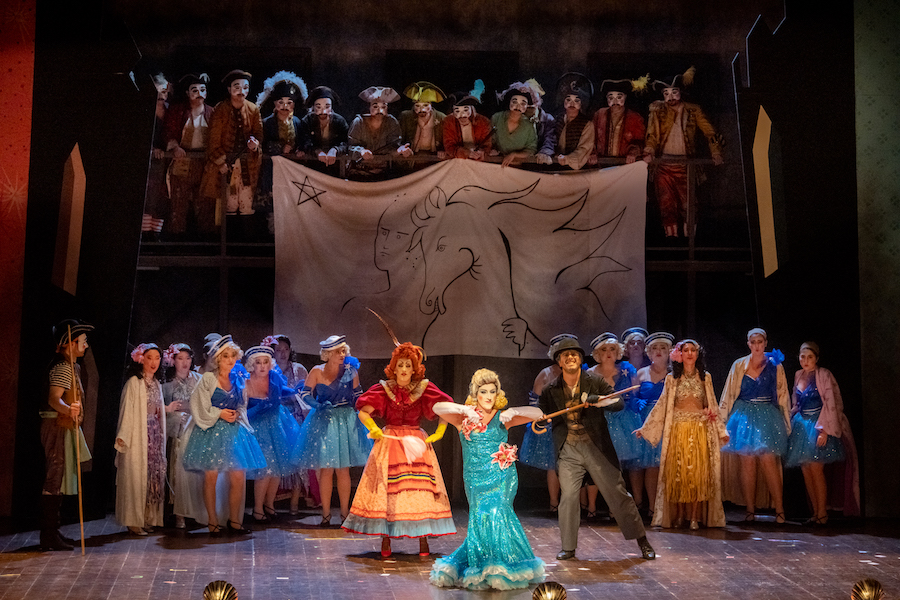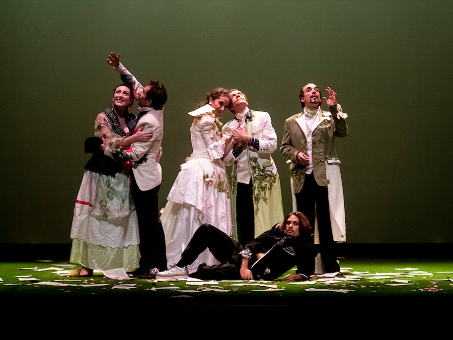 Beppe Navello concerta con sapienza le schermaglie verbali in cui sono impegnati i personaggi e la sua traduzione del testo mantiene la fluidità e fragranza del francese trasposto in un italiano che si rivela essere moderno senza risultare incongruo con lo stile settecentesco originale. Visivamente, oltre che nei raffinatissimi costumi, l’eleganza della mano registica si rivela in particolari minimi che diventano un efficace gesto teatrale: la luce che invade la scena quando i personaggi scoprono che l’amore ha preso il posto dell’amicizia e allora Lubin che srotola il prato verde rappresenta il momento del “risveglio di primavera” di cuori fino a quel momento chiusi nel dolore, mentre nel finale la pioggia di pagine dei vetusti tomi di Hortensius è un tocco semplice ma magico per porre termine al gioco con cui gli attori in scena hanno cercato, riuscendovi, di coinvolgere il pubblico nella loro tormentata ricerca fino alla finale scoperta, “la sorpresa dell’amore”.