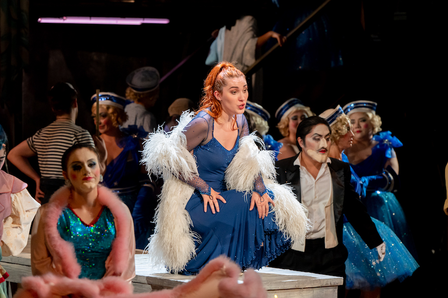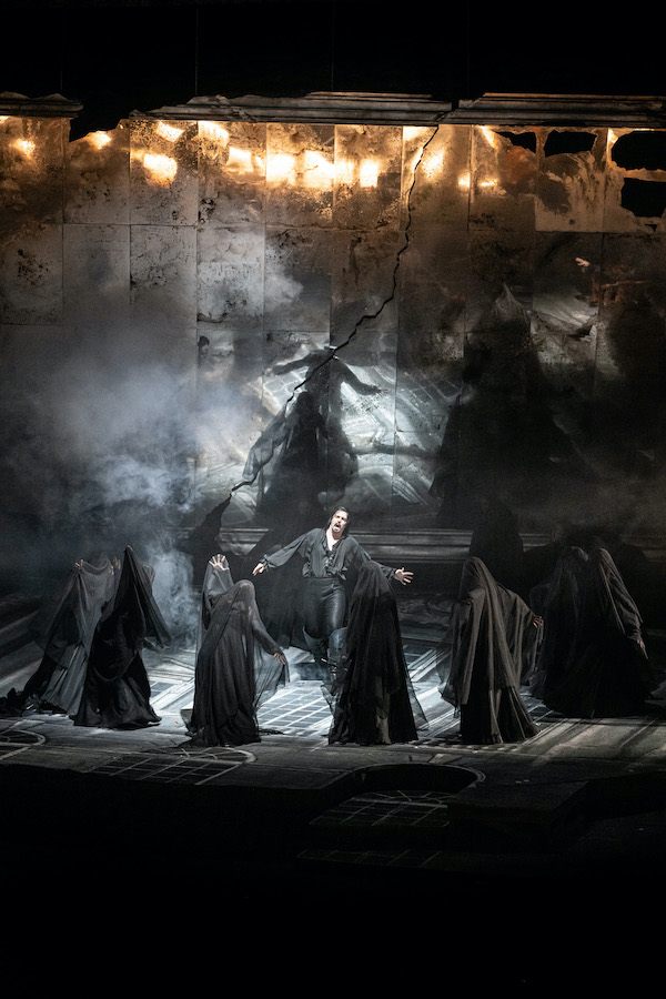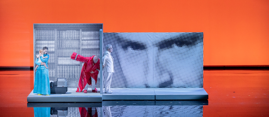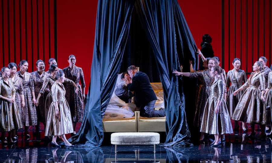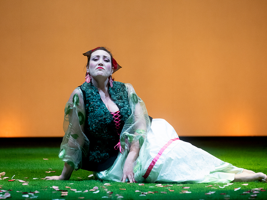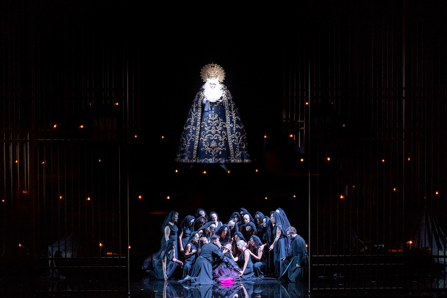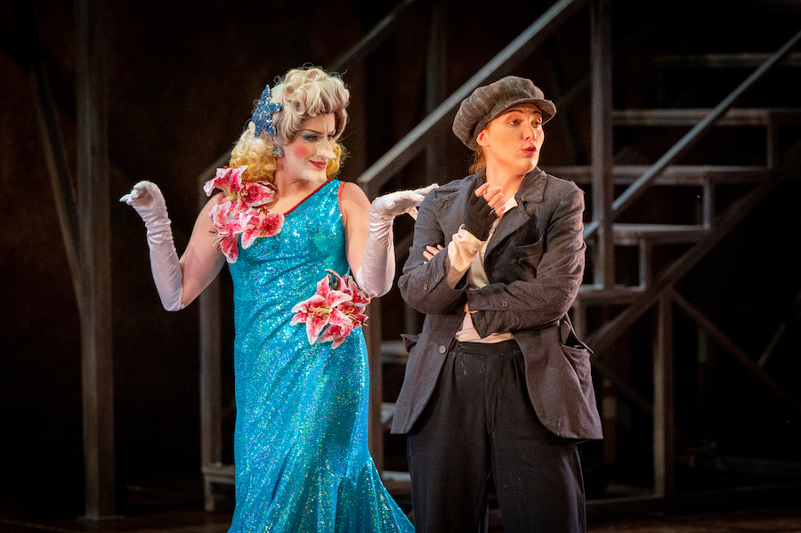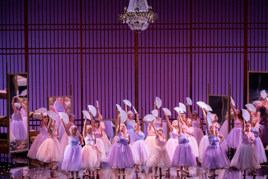 Il testo è un mirabile esempio di “marivaudage”, termine con cui si definisce lo scambio di espressioni galanti e raffinate, che connota i dialoghi tra la Marchesa e il Cavaliere a contrasto con la parlantina schietta e terrena dei due personaggi di Lisette e Lubin, quest’ultimo ennesima incarnazione del servo Arlecchino con la sua capacità di adattarsi ai diversi umori del padrone. In questa produzione il bravissimo attore Stefano Moretti dimostra tutta la vivace presenza scenica, addirittura acrobatica, che ci si aspetta da Arlecchino, così come la disinibita loquacità. E non ultimo il vestito, un’elegantissima rivisitazione del costume della maschera, disegnato come tutti gli altri da Luigi Perego il quale si occupa anche della minimalistica scenografia formata da teli neri (siamo all’interno della casa di una vedova!) che poi spariscono per un luminosissimo esterno quando i sentimenti della donna prendono una piega meno afflitta. Al pari vivace è la presenza scenica di Marcella Favilla, una Lisette pragmatica e concreta. Fabrizio Martorelli delinea un convincente Hortensius, con le sue saccenti e pedanti citazioni e i suoi fallaci sillogismi. Il più introverso e contorto è il Cavaliere, a cui Lorenzo Gleijeses presta i suoi tic e le sue fisime. Presente solo nella seconda parte, il Conte di Giuseppe Nitti mostra la sua tronfia sicurezza prima della sconfitta. Daria Pascal Attolini è quella che come Marchesa tiene la scena più di tutti gli altri personaggi sviluppando con il suo lucido eloquio l’evoluzione dei suoi sentimenti, una bella prova attoriale.